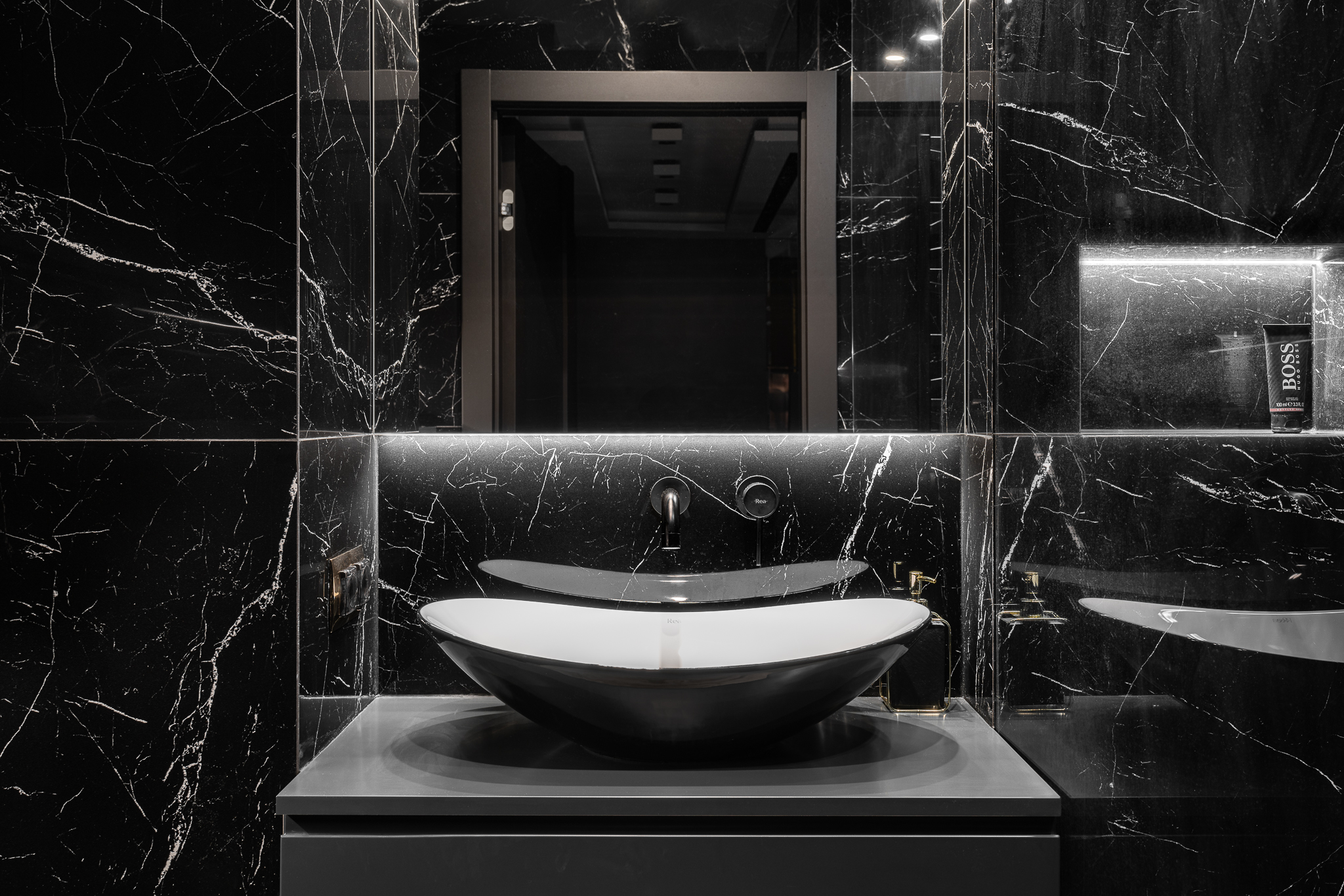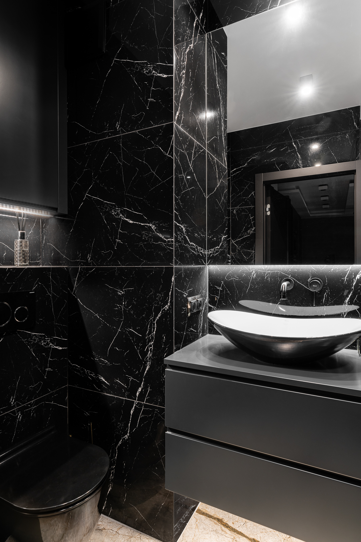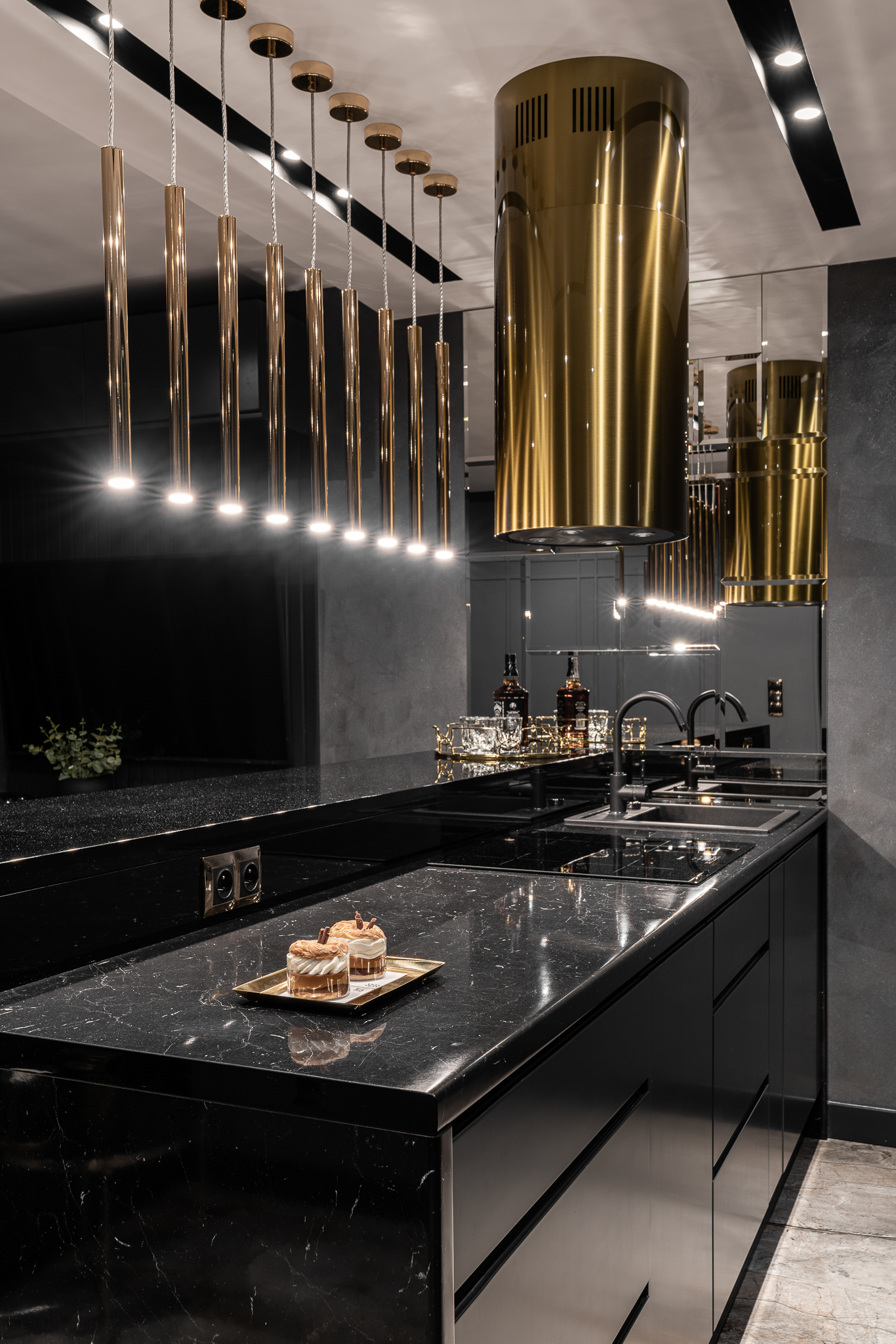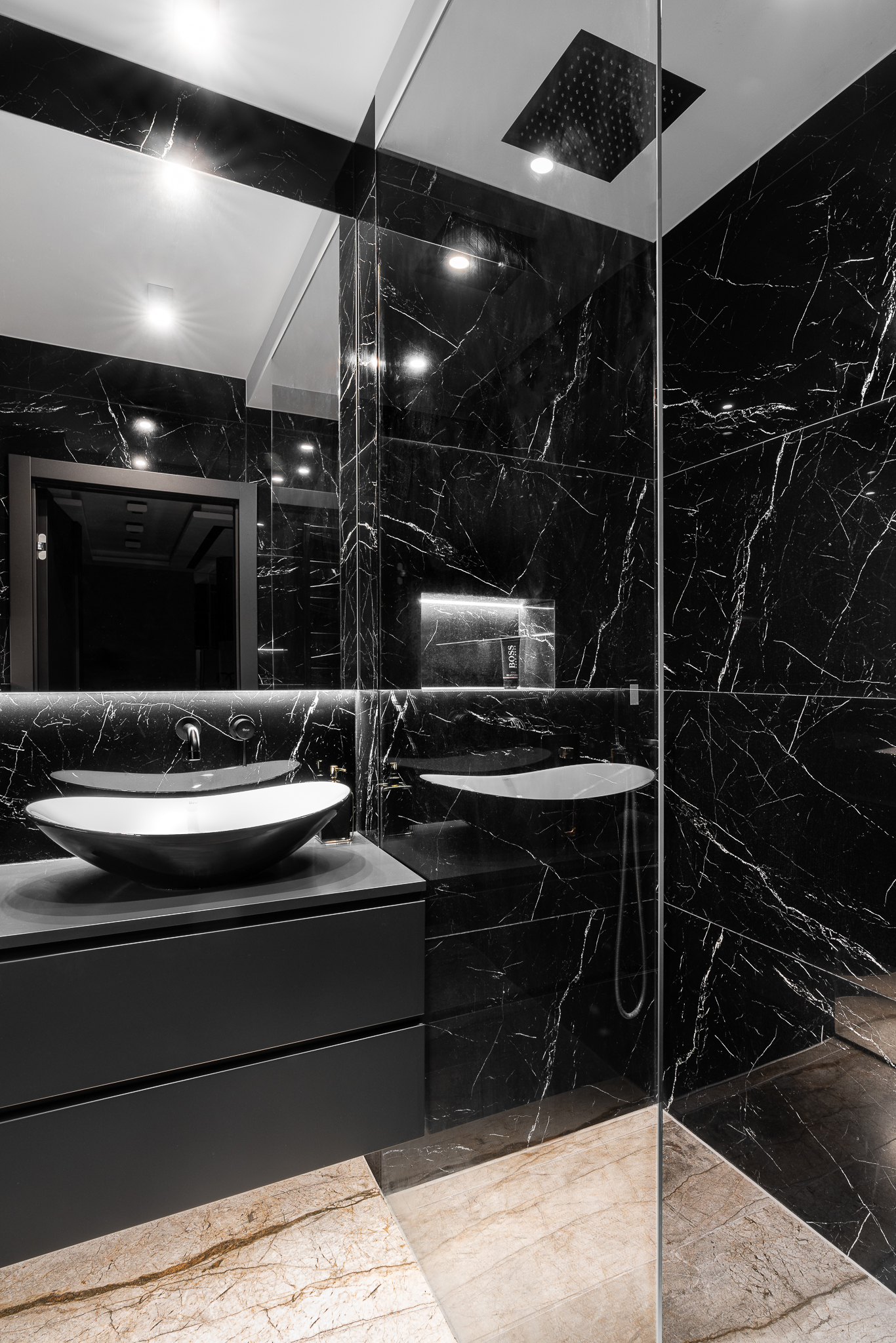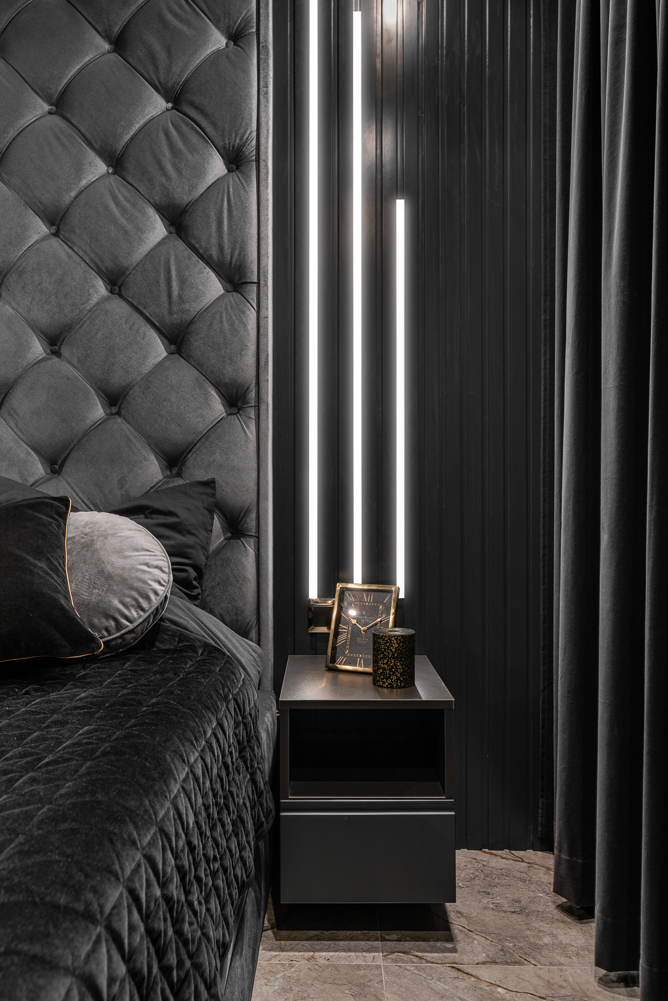 The apartment in Garnizon was supposed to give fun in atmosphere of mystery. The colour scheme from the very beginning was defined as black and gold. The client was delighted with the appearance of our office and insisted that his apartment "should be black". I made the project with pure pleasure, negotiating every shade of gray and lighter colors (e.g. stone, warmer floor) as well as white ceilings. The apartment in premium class was made in an ECONOMIC budget. We like