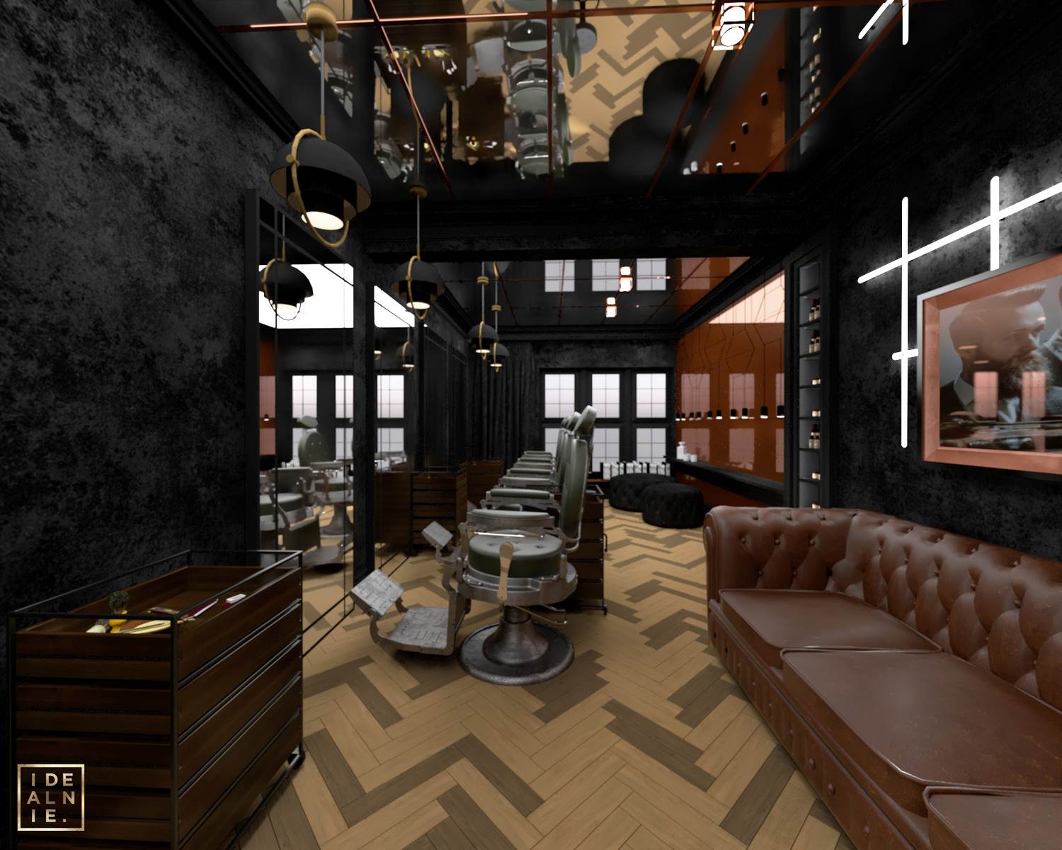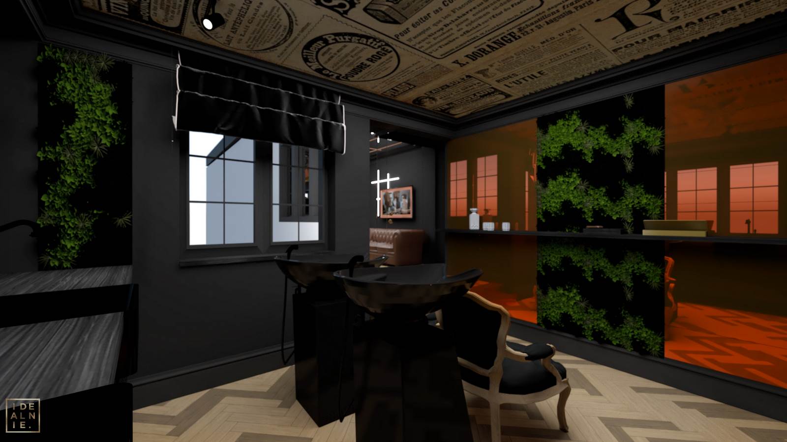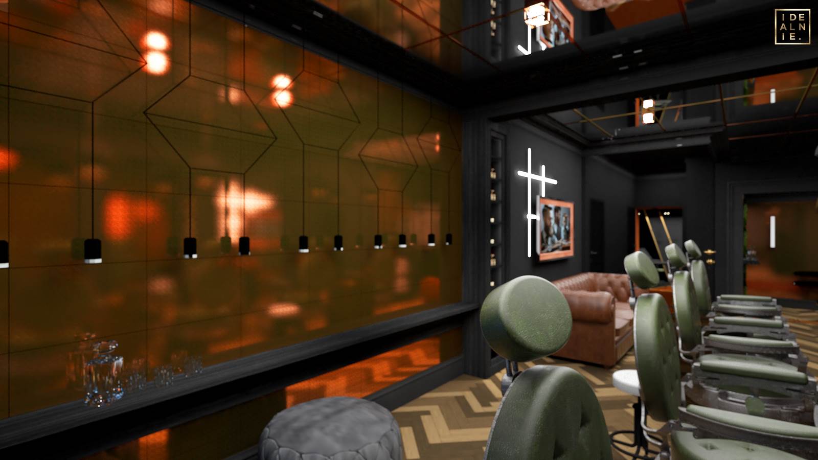 "The Cooper Club House" is a new place on the map of fashionable London. This elite and mysterious Barber shop, or maybe even a "club for men", will be located above the well-known tattoo studio - Ushuaia Tattoo London. The whole interior will be maintained in an elegant atmosphere from the 70's, where whiskey was poured and cigars were smoked. A beautiful decoration of the interior is the mirror ceiling, which enlarges the space, and through the stylized frames immediately take us to the past. Copper played a key role in this interior. We used it in a decorative way through wall compositions and treads. If you focus enough, you can hear melodies played from the gramophone...