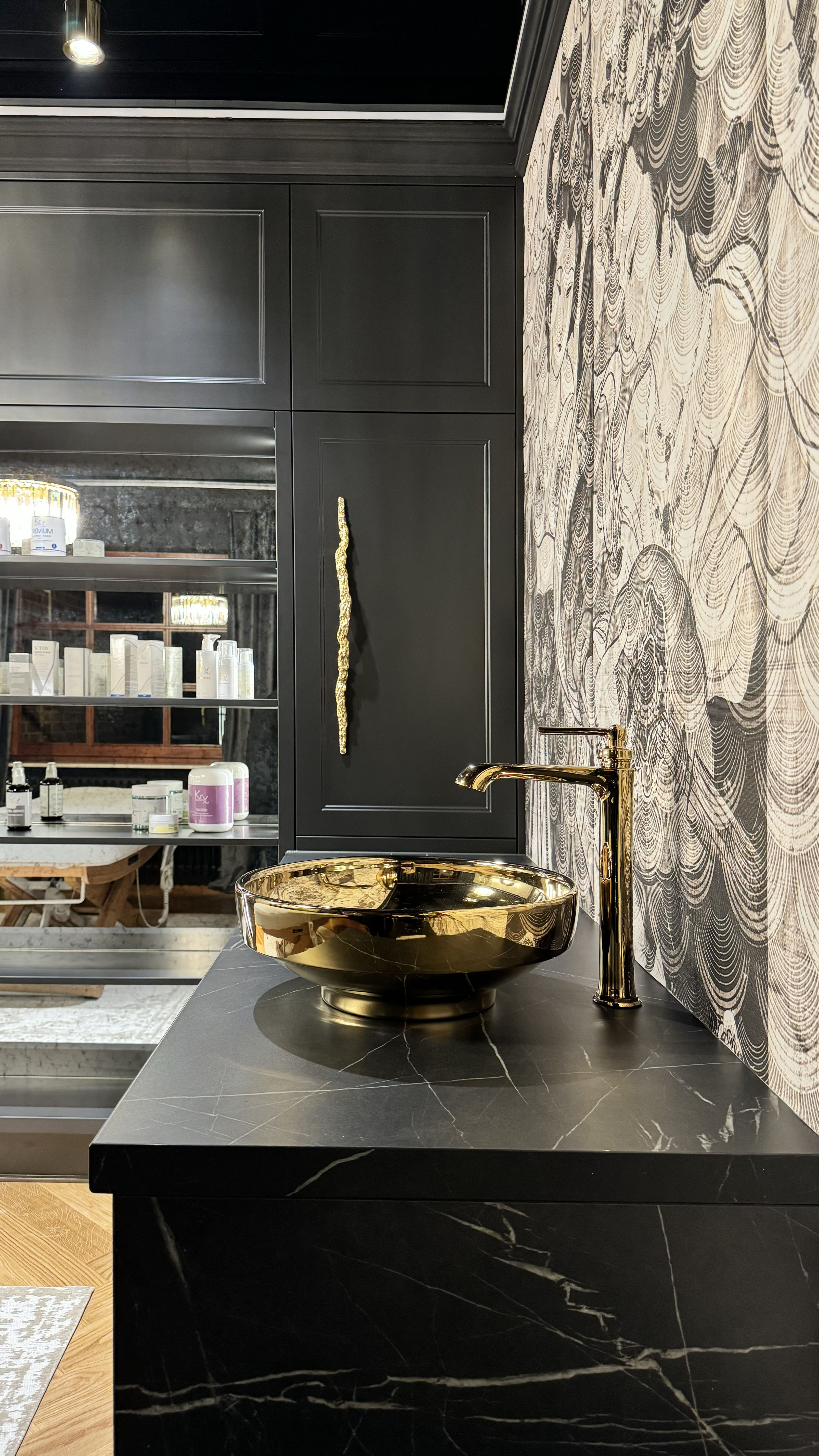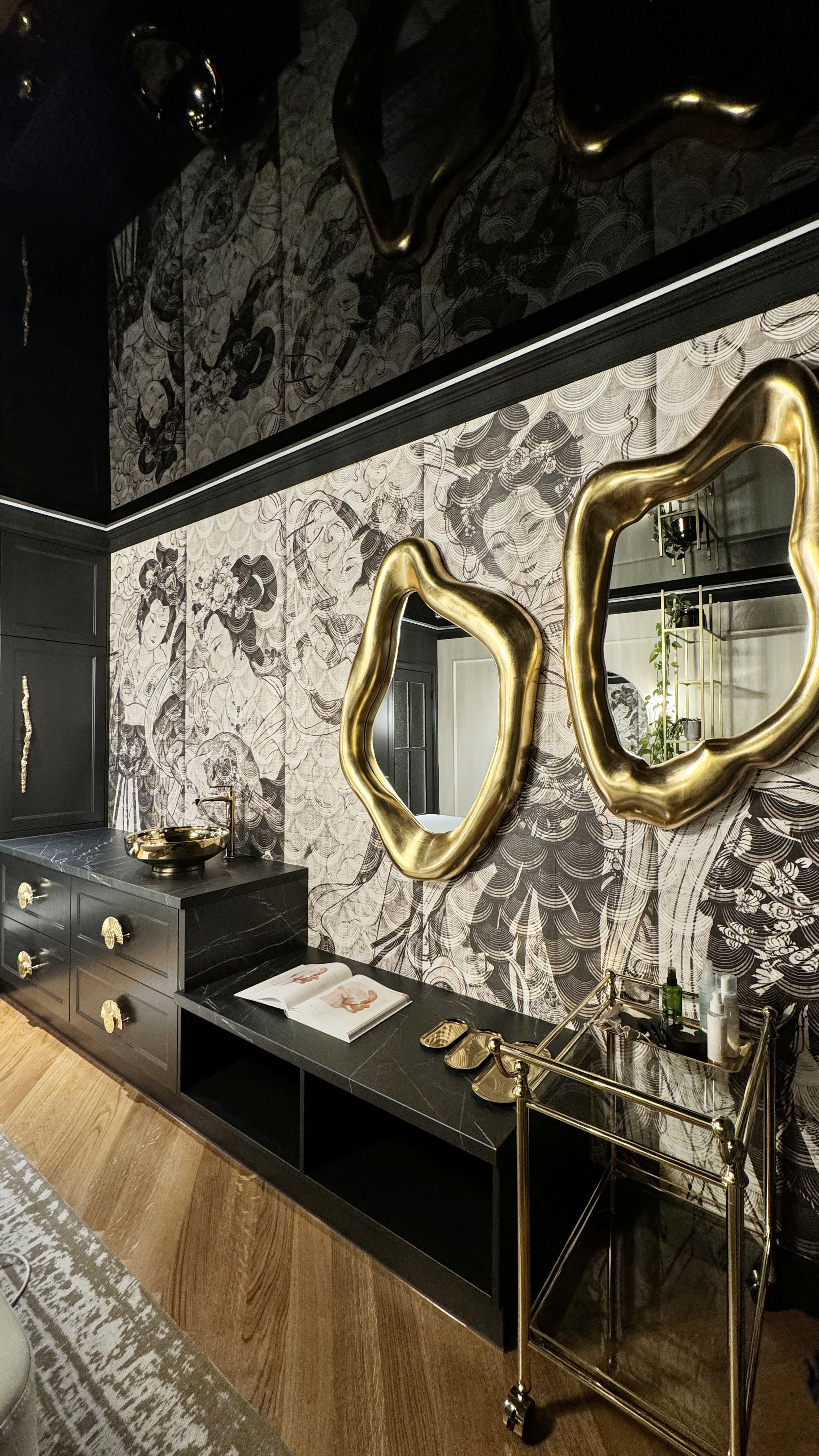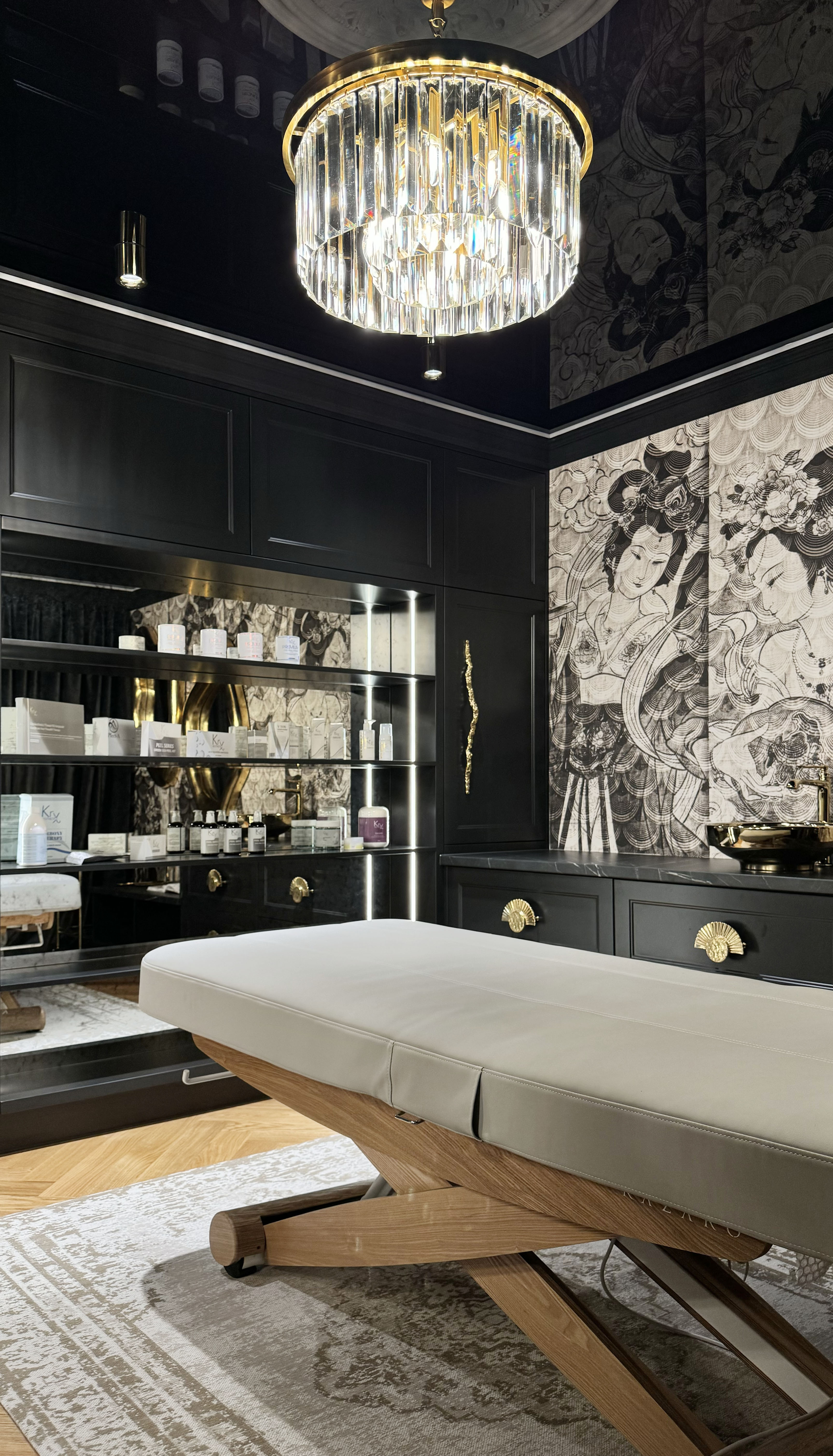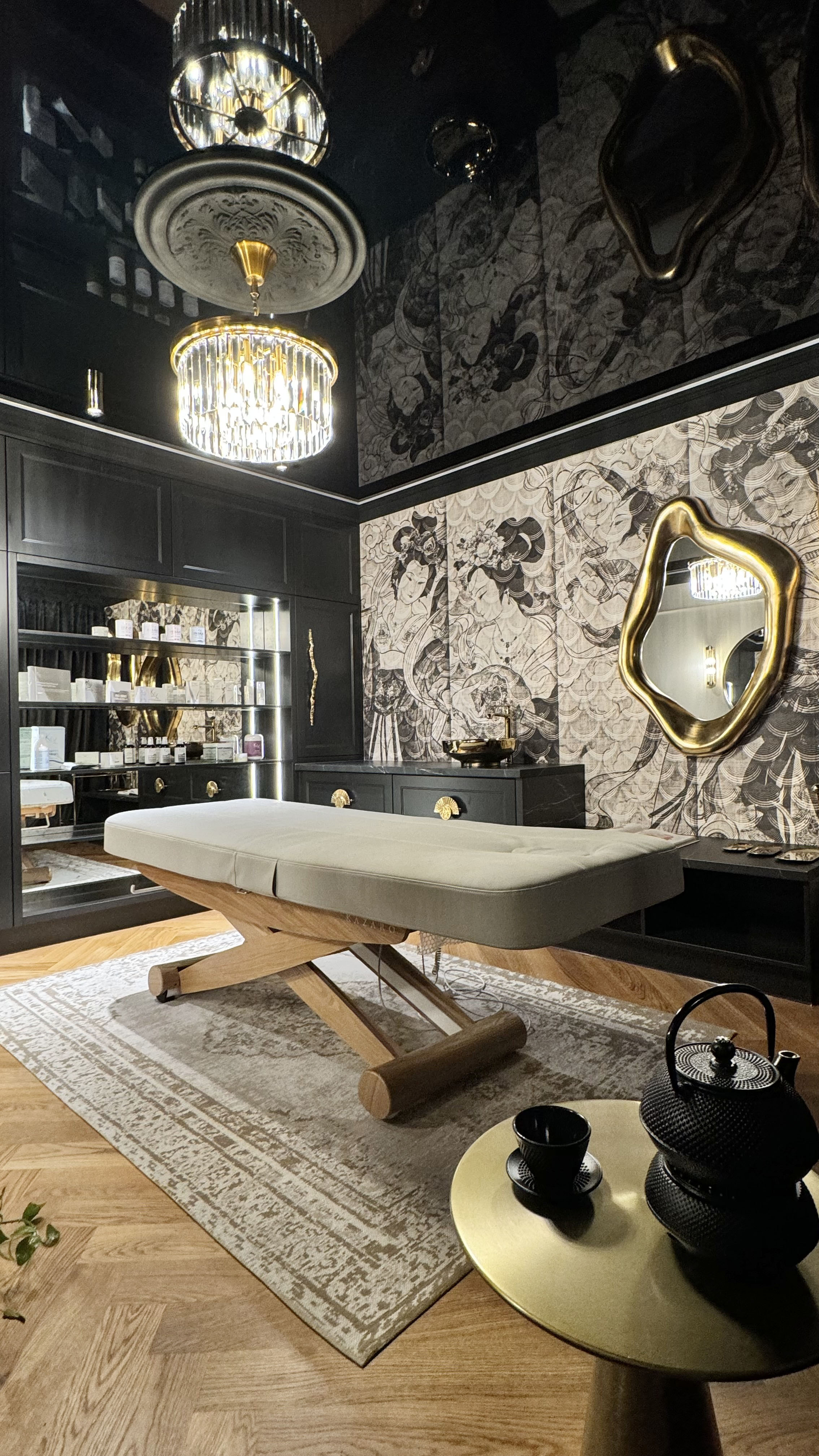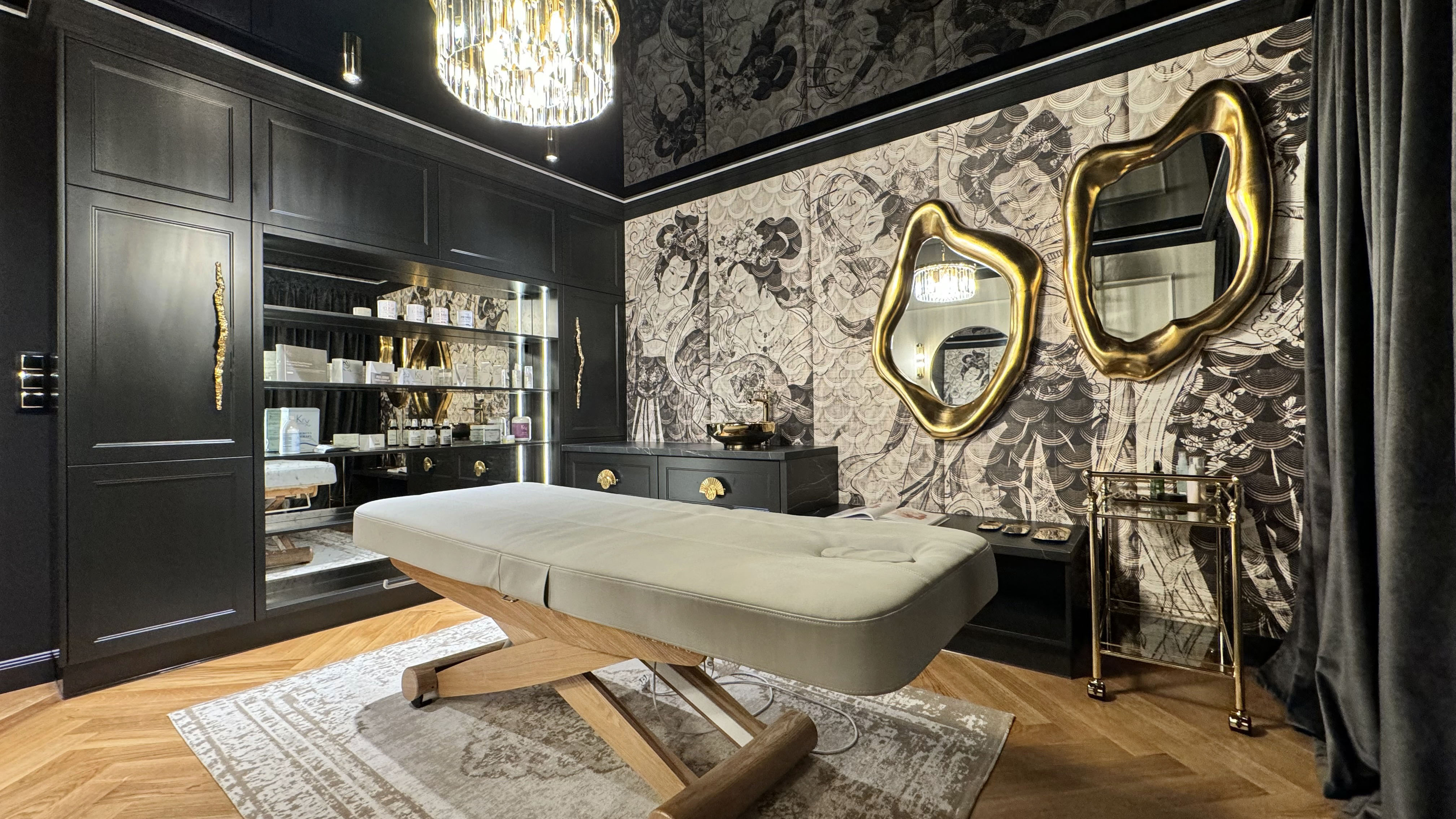 An atmospheric office where the magic of youth will take place. Kasia keeps her clients' faces firm and youthful both manually (rejuvenating massages) and using specialized devices. Kasia and I have come a long way from our dream design in Emerald colors (resignation during cooperation) to an anthracite-beige interior in the Far Eastern style. Thank you for giving us the so-called Free Hand. The interior has changed dramatically thanks to the client's words: Please design it completely differently, the way you would see it!