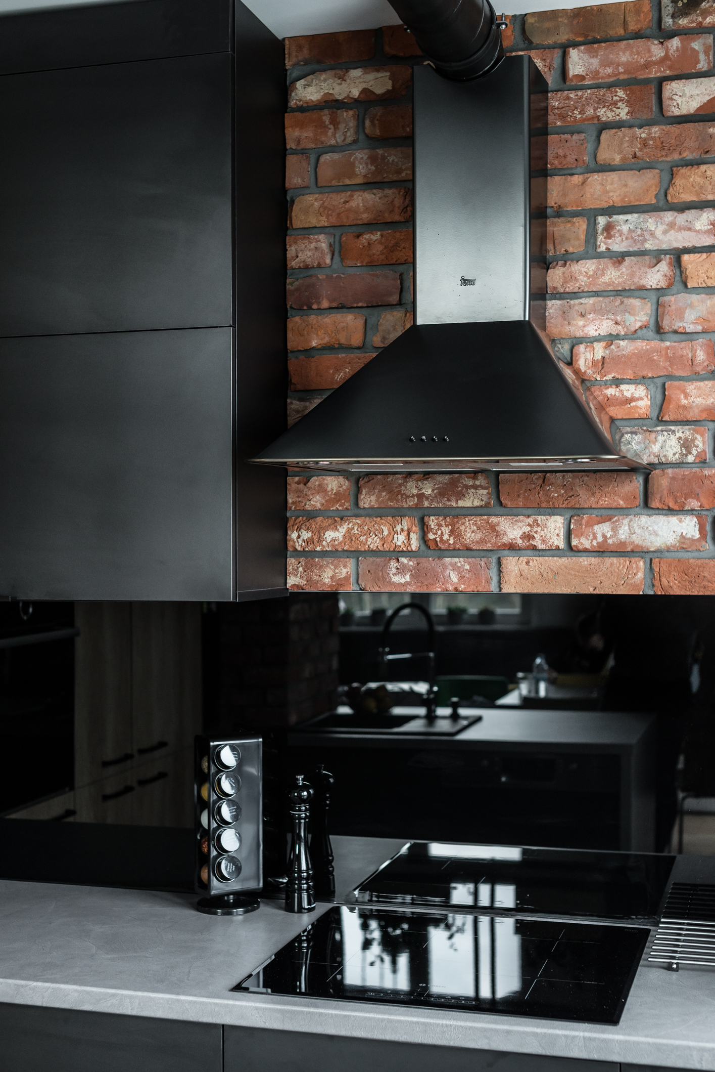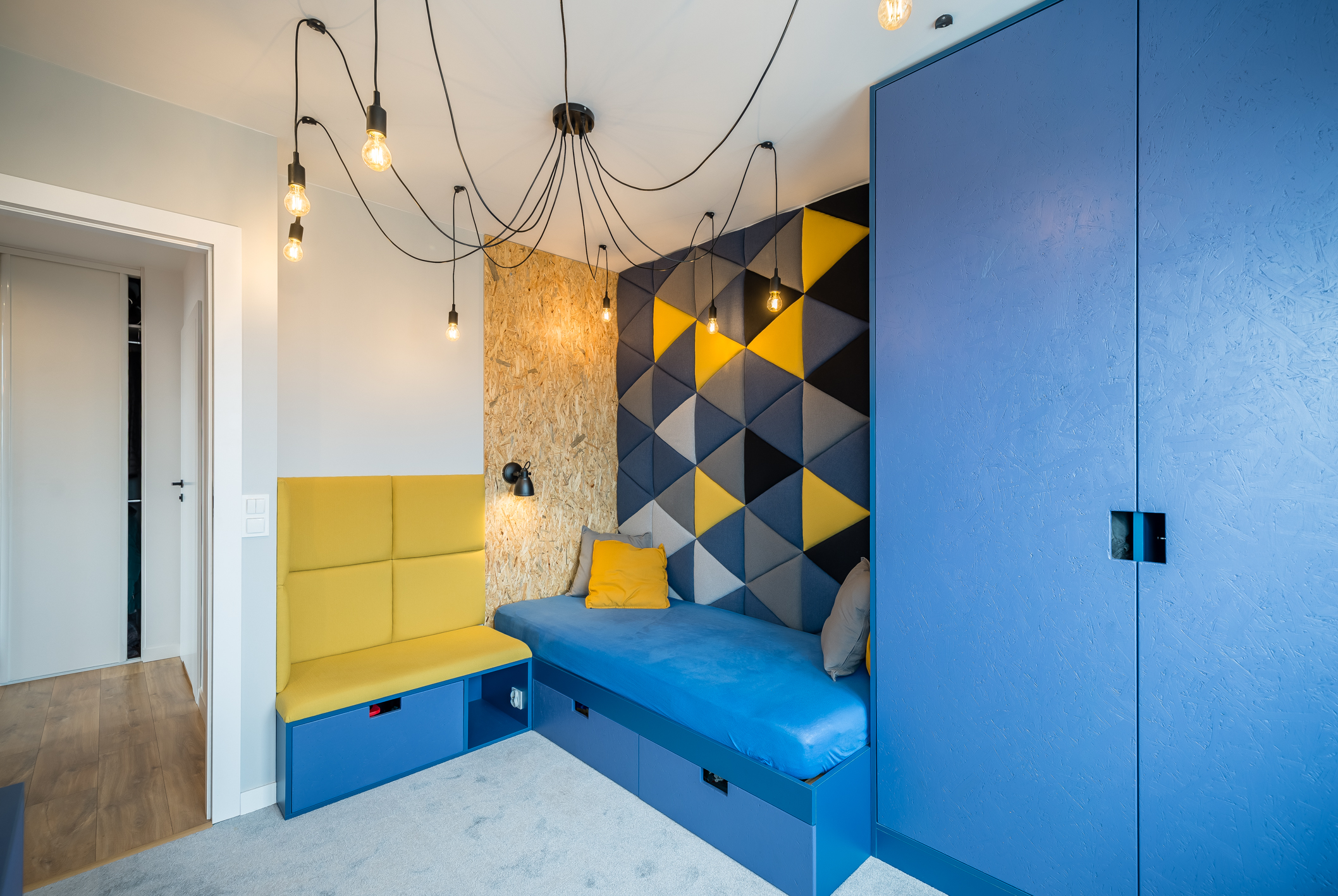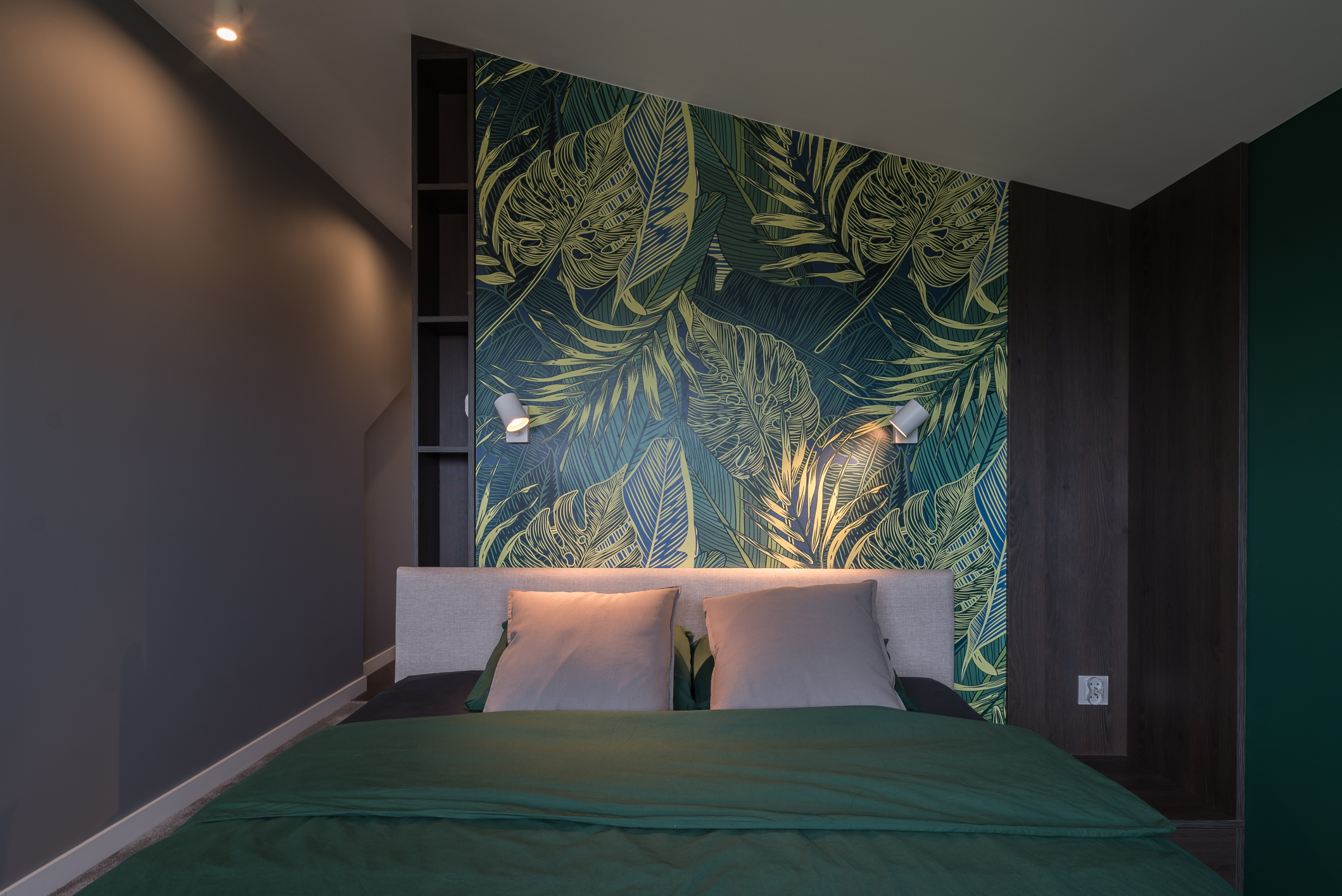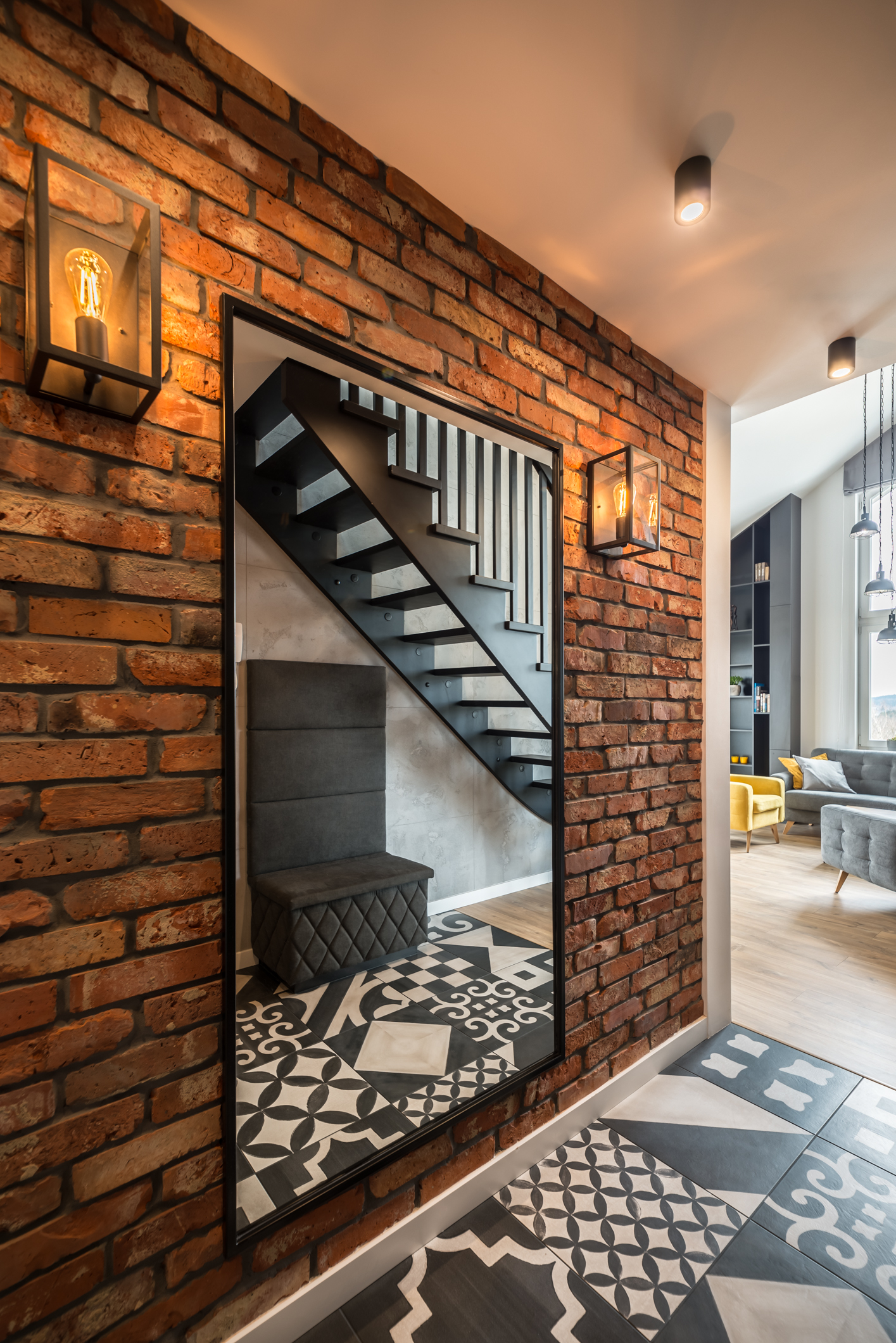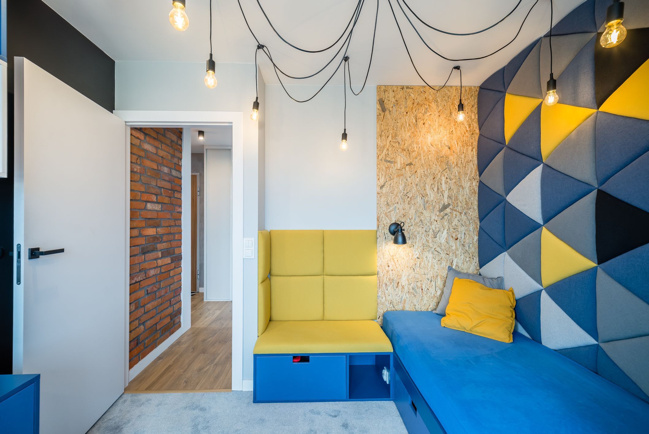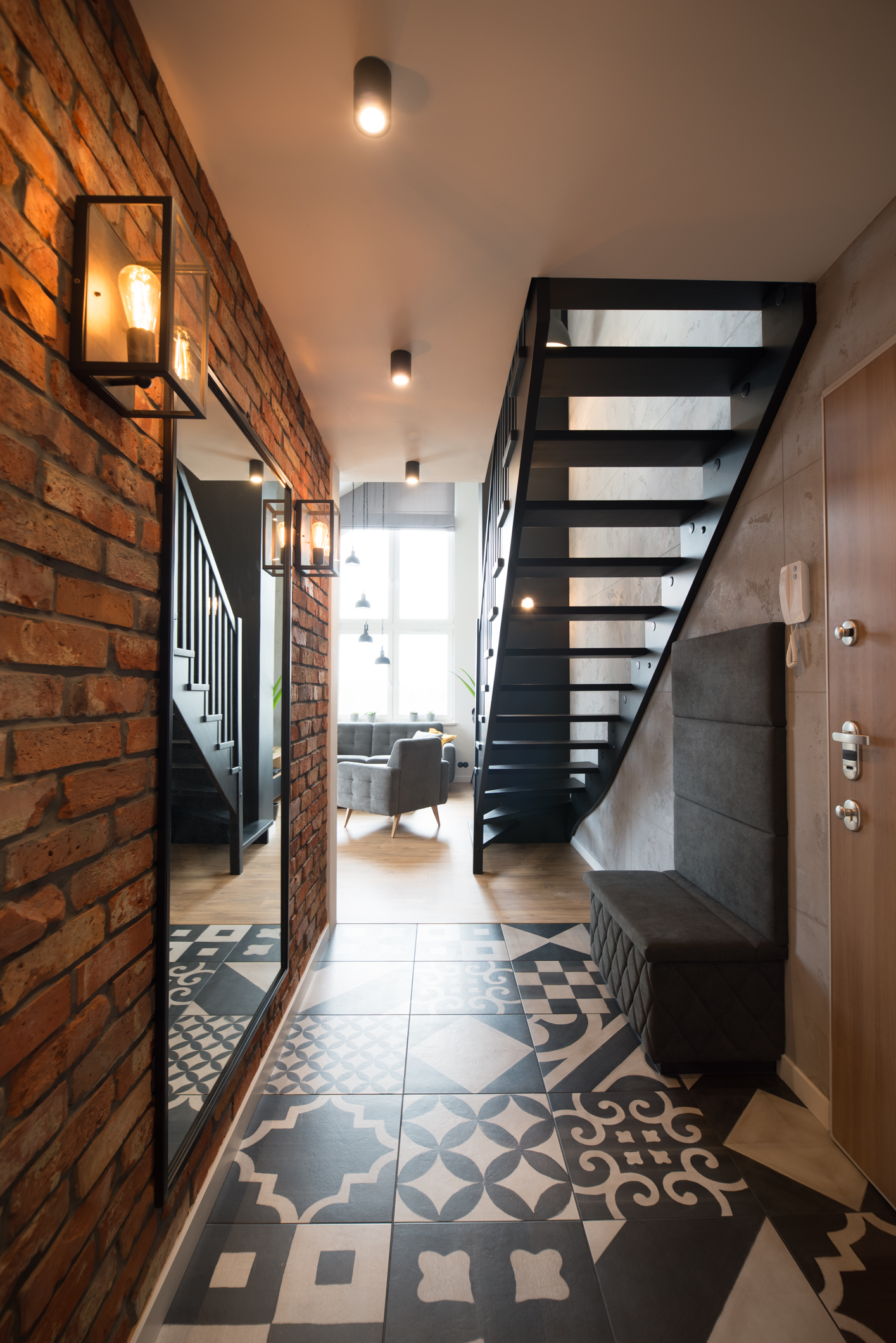 It is a two-level apartment, which was created on the basis of our "MOVE IN READY" package, and its realisation was done by our befriended construction team. Thanks to this form of cooperation, everything has been touched up to the last detail. From the very beginning, the interior was intended to be designed in loft style combined with the 80's. I tried to include a note of modernity in the project in the form of a beautiful kitchen with a peninsula and black lacobel on the wall, or in the form of beautiful Italian tiles by Iris Ceramica, which were used in the hall and in the kitchen. The project is more economical than most of our portfolio and is a proof that we are able to offer something unique and surprising in every budget.