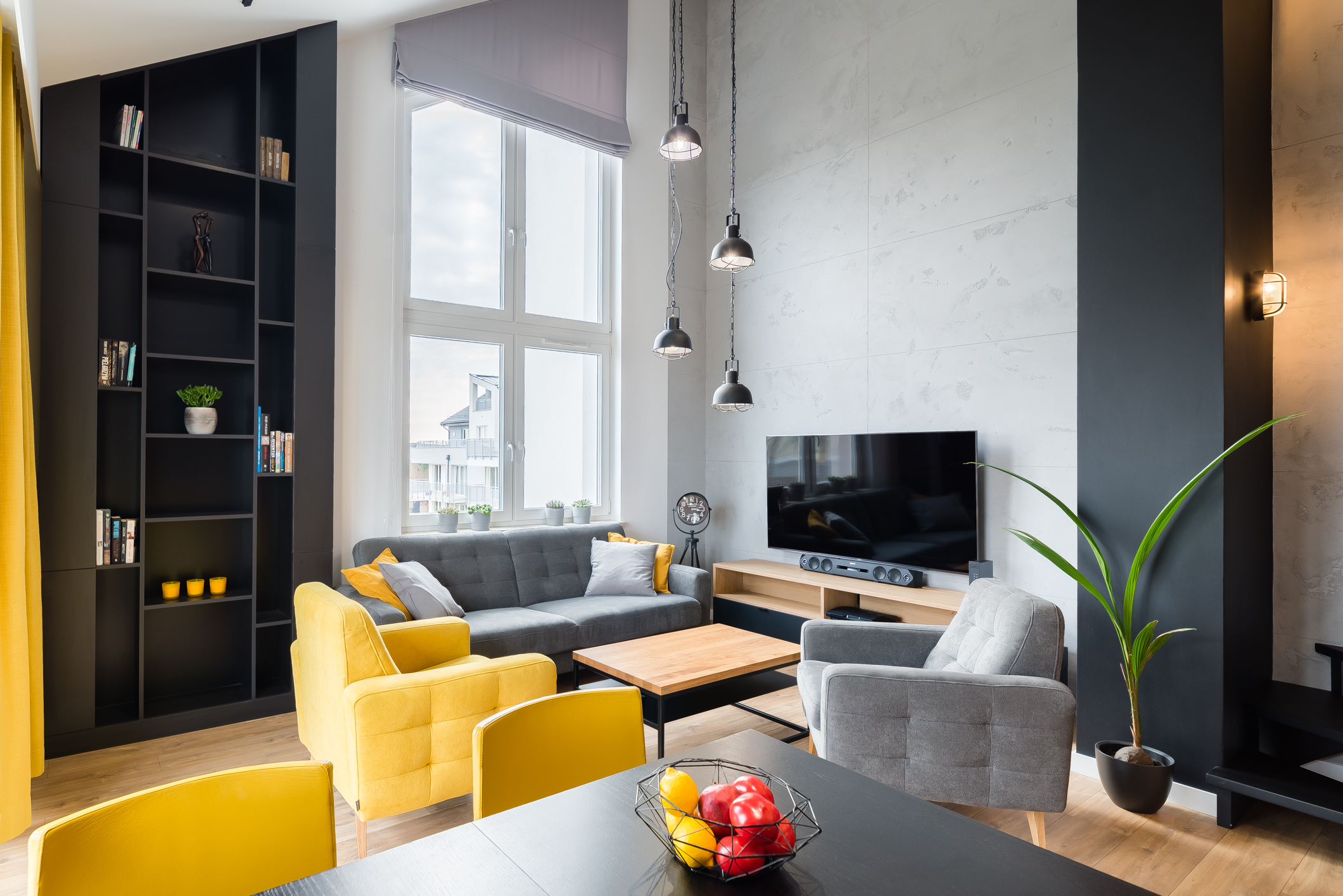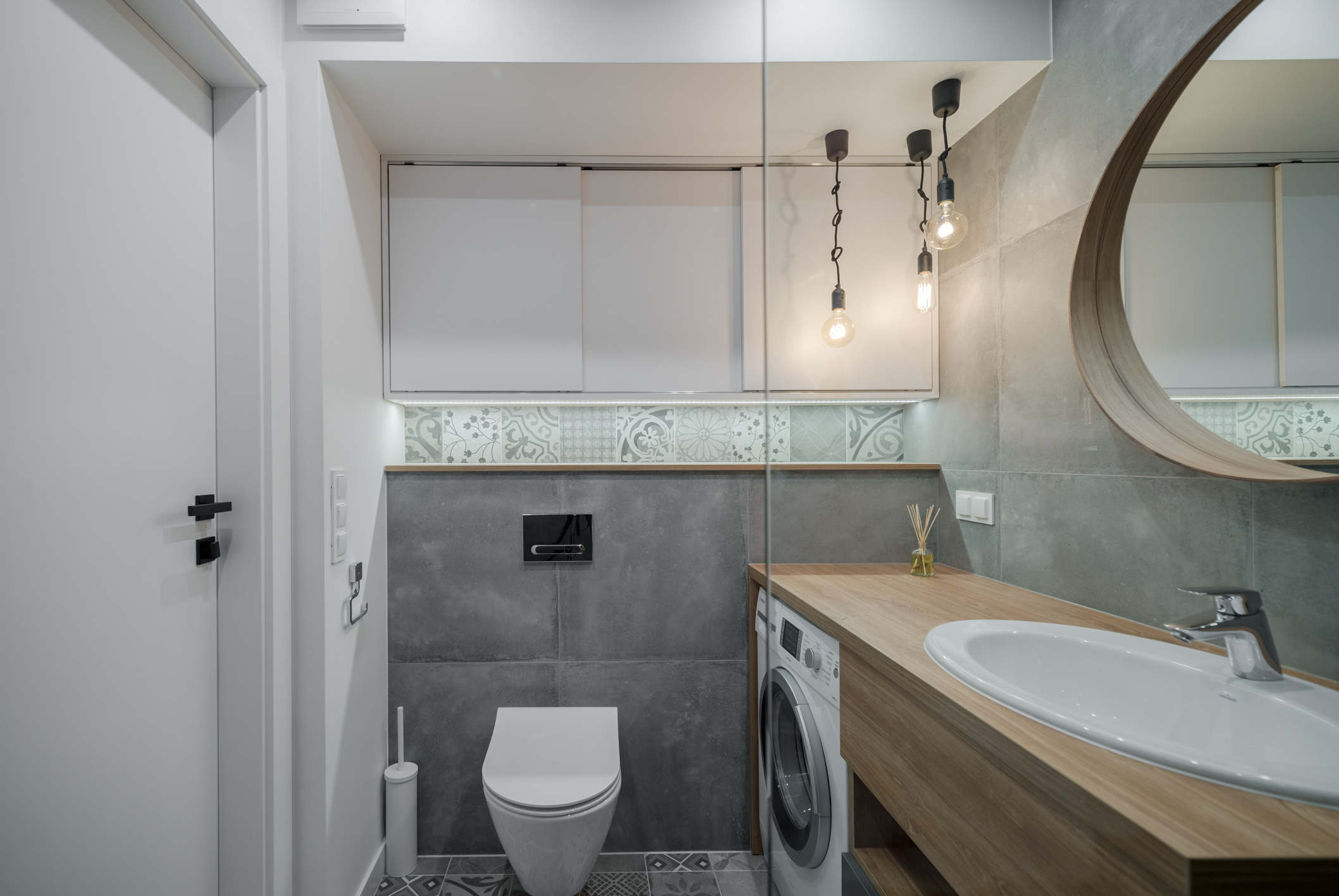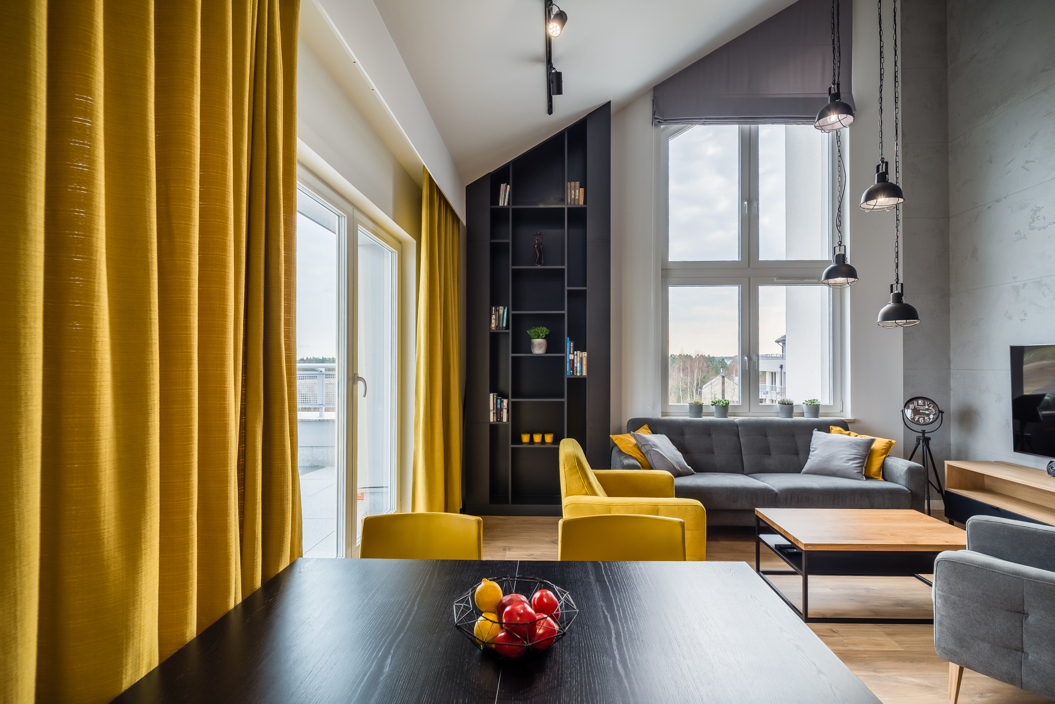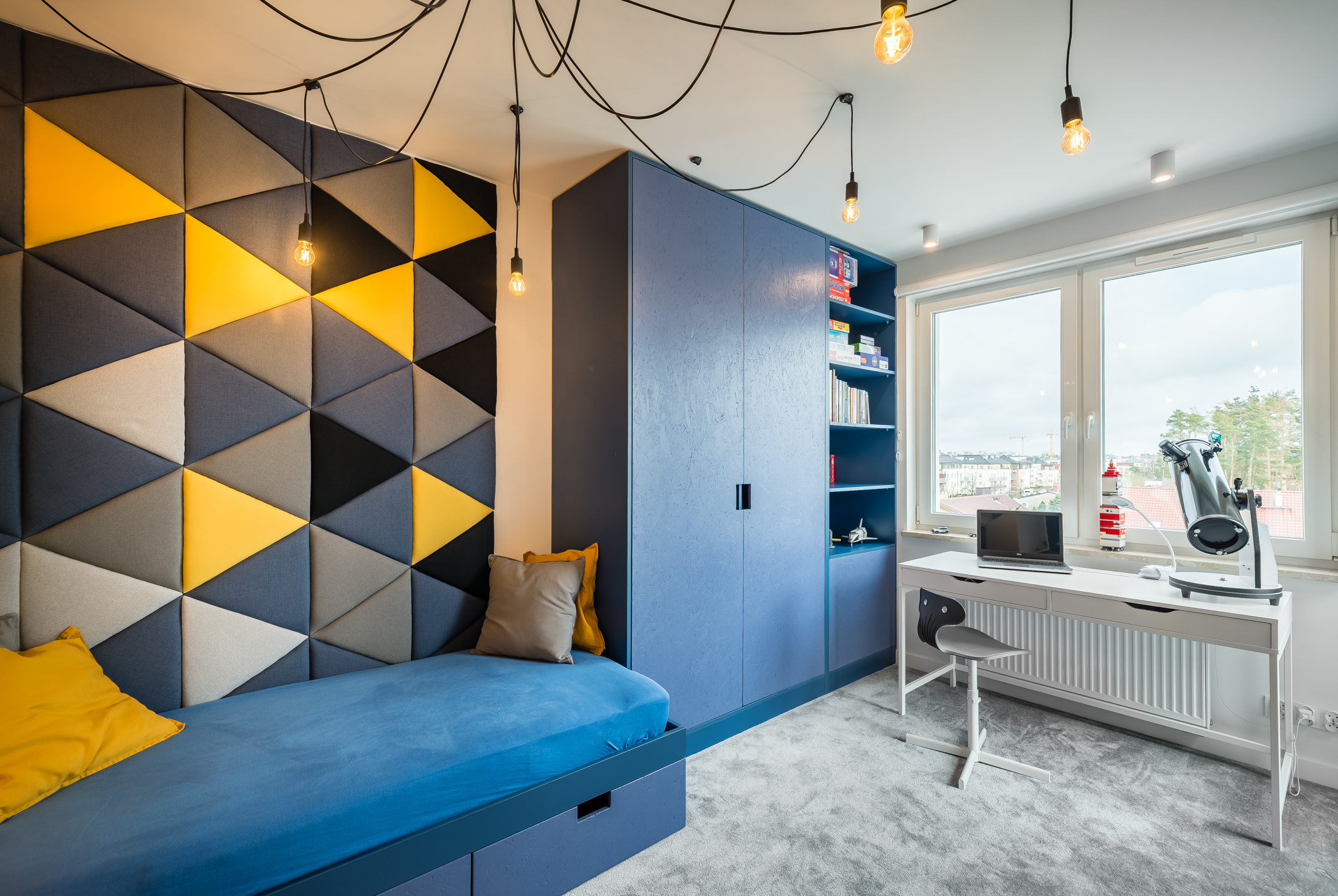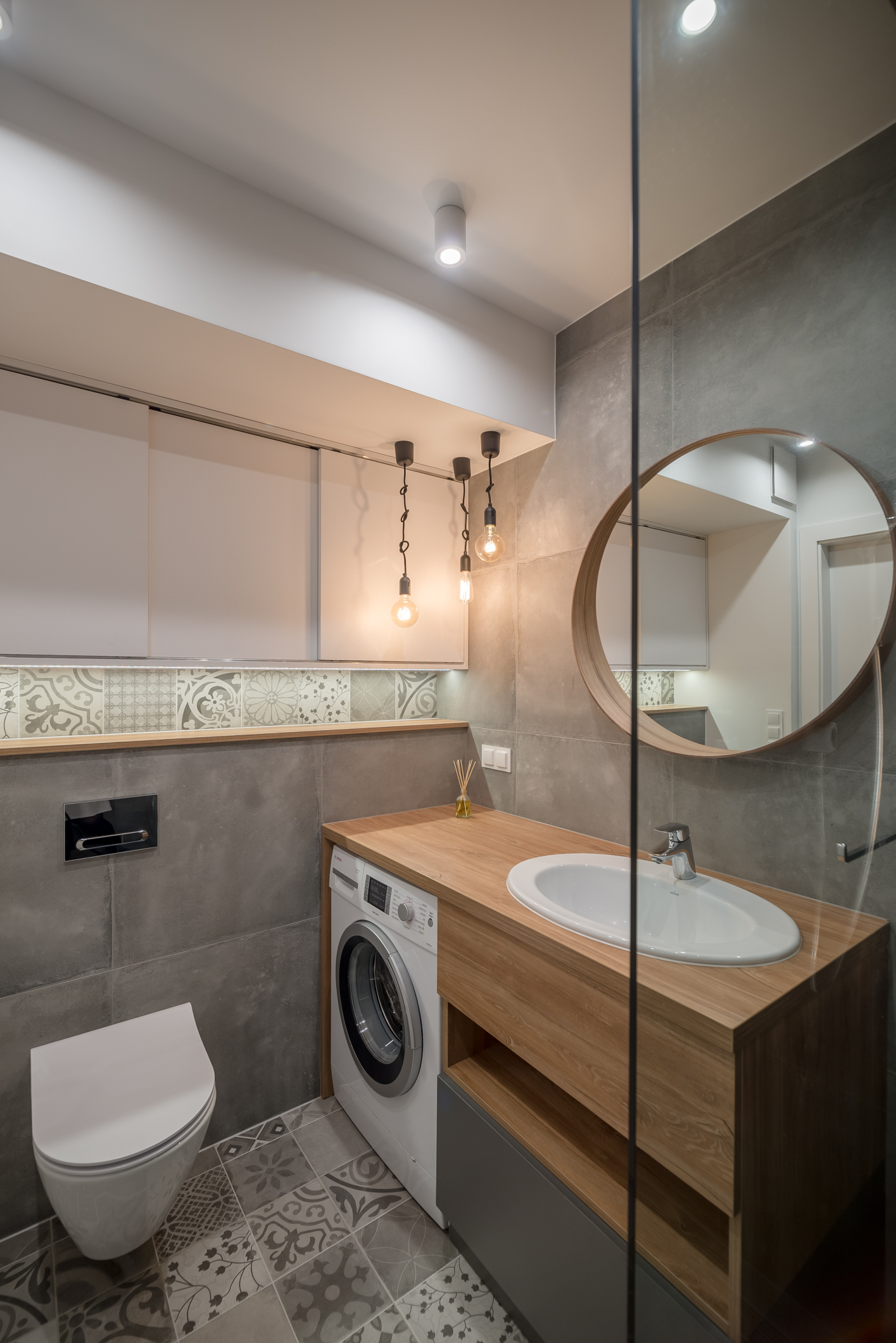 It is a two-level apartment, which was created on the basis of our "MOVE IN READY" package, and its realisation was done by our befriended construction team. Thanks to this form of cooperation, everything has been touched up to the last detail. From the very beginning, the interior was intended to be designed in loft style combined with the 80's. I tried to include a note of modernity in the project in the form of a beautiful kitchen with a peninsula and black lacobel on the wall, or in the form of beautiful Italian tiles by Iris Ceramica, which were used in the hall and in the kitchen. The project is more economical than most of our portfolio and is a proof that we are able to offer something unique and surprising in every budget.