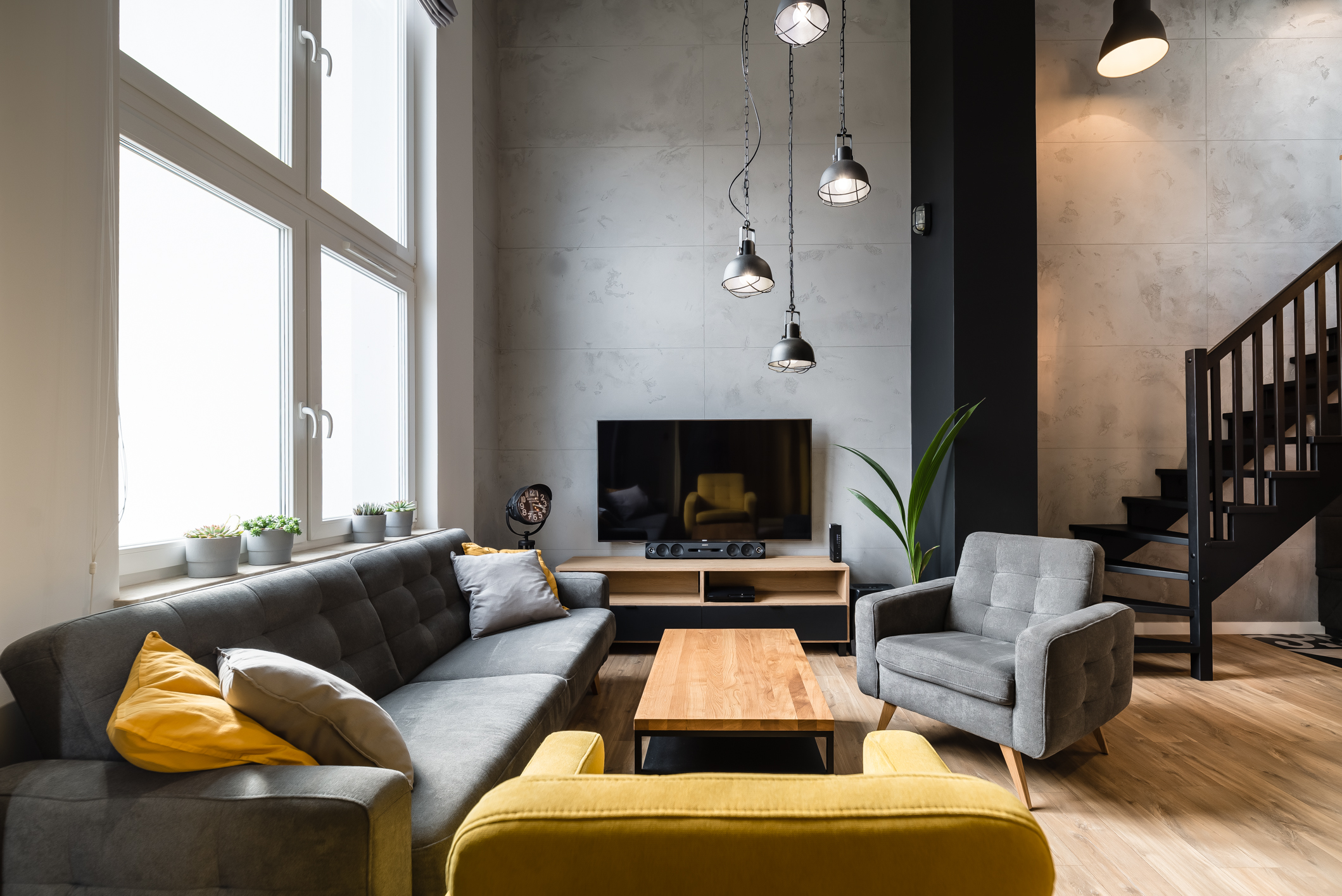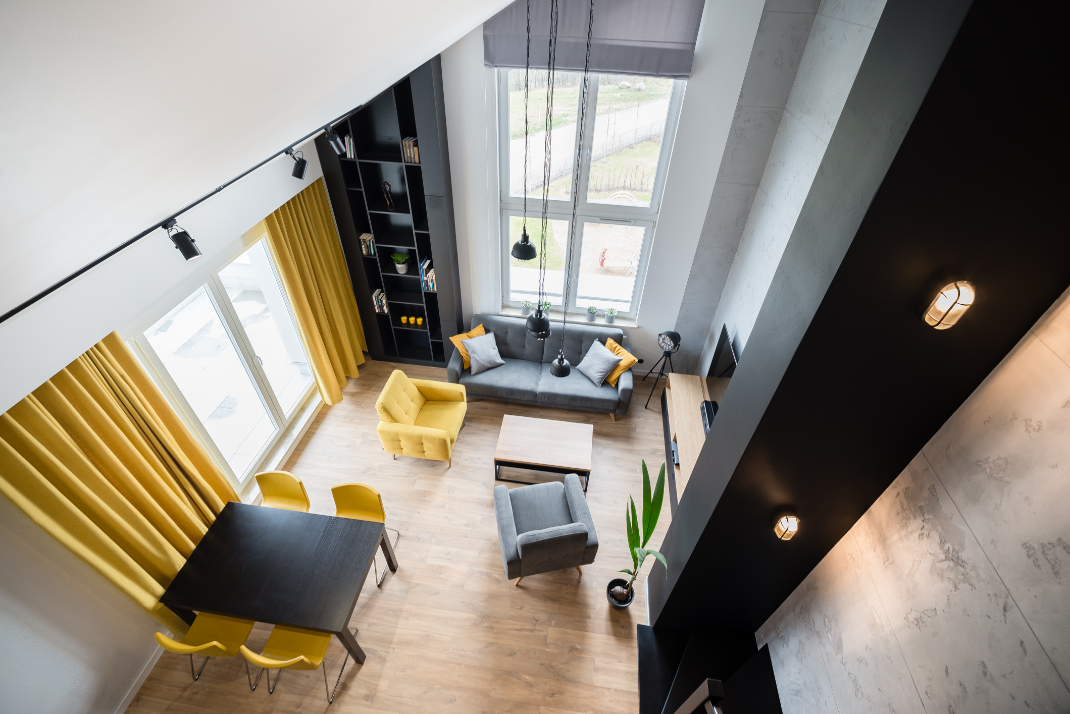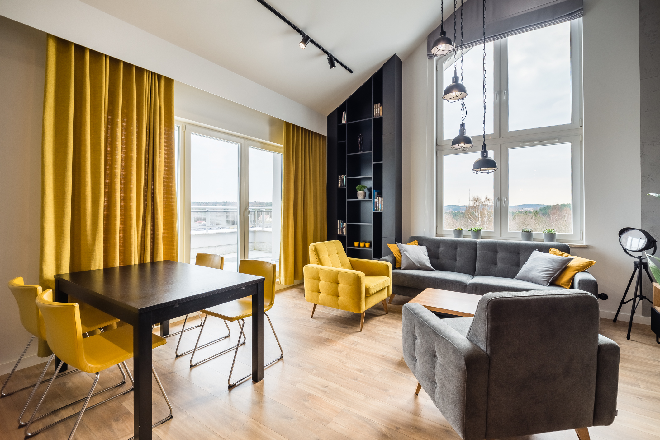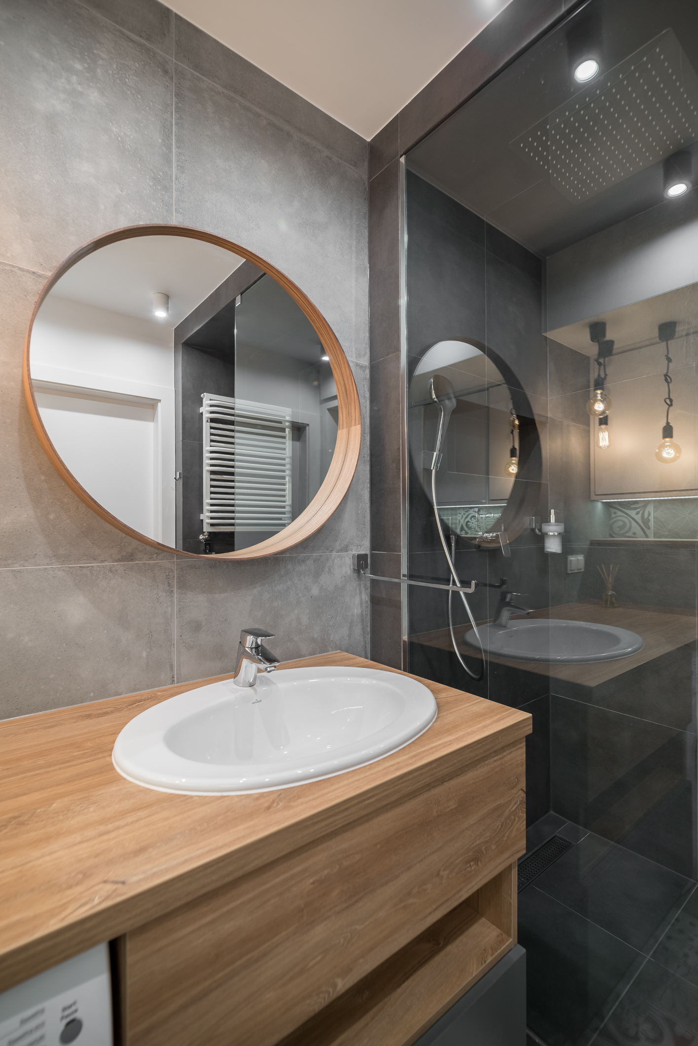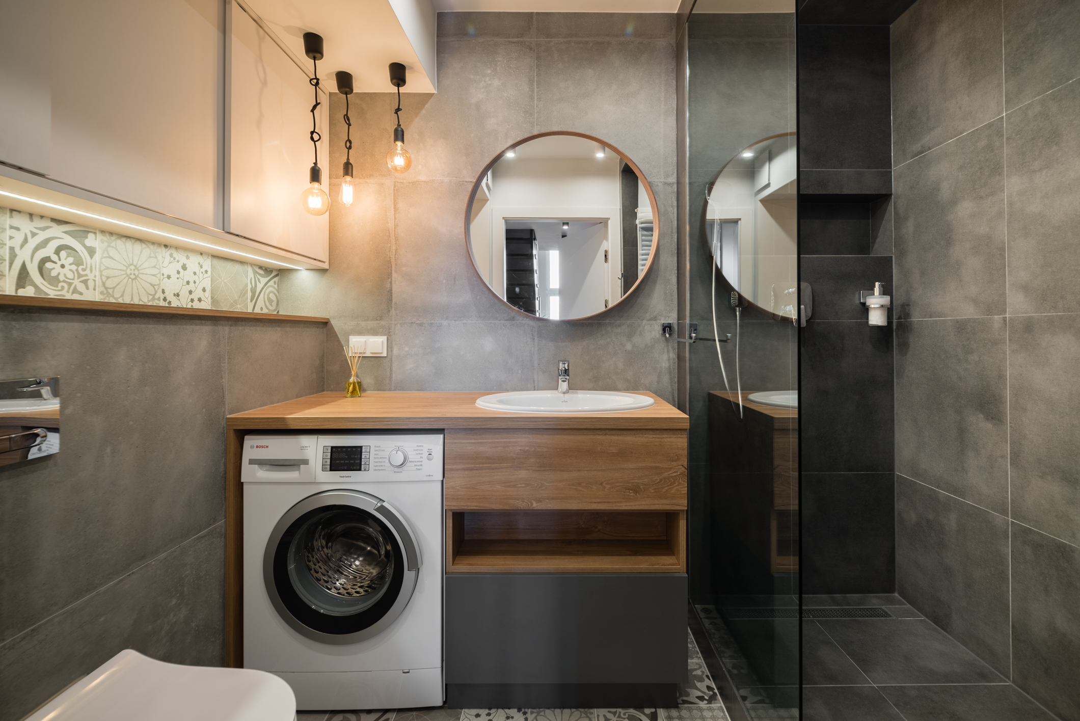 It is a two-level apartment, which was created on the basis of our "MOVE IN READY" package, and its realisation was done by our befriended construction team. Thanks to this form of cooperation, everything has been touched up to the last detail. From the very beginning, the interior was intended to be designed in loft style combined with the 80's. I tried to include a note of modernity in the project in the form of a beautiful kitchen with a peninsula and black lacobel on the wall, or in the form of beautiful Italian tiles by Iris Ceramica, which were used in the hall and in the kitchen. The project is more economical than most of our portfolio and is a proof that we are able to offer something unique and surprising in every budget.