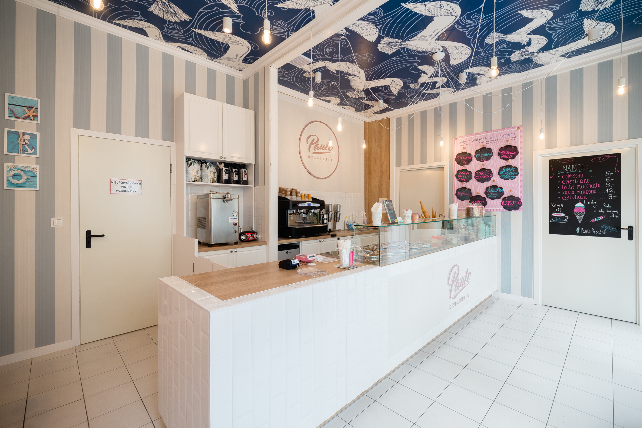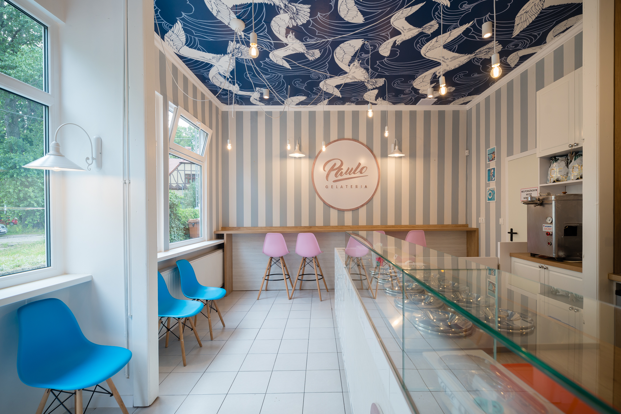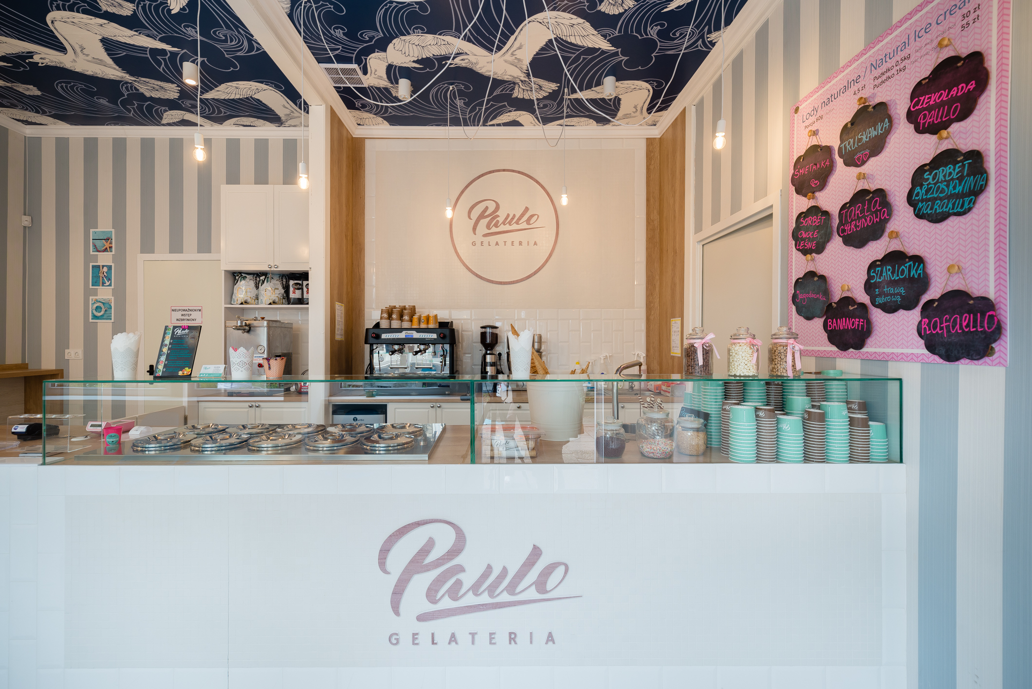Healthy, organic, and sometimes even sugar-free ice cream is Paulo's speciality. A chain ice cream stores where each place looks completely different but they are connected by powder colours and elements of Scandinavian design. In our career we had the opportunity to design two different premises for two different owners (franchisees). We distinguished them due to the nature of the location of the premises and the aesthetic taste of the owners. Waiting for a photo session.
