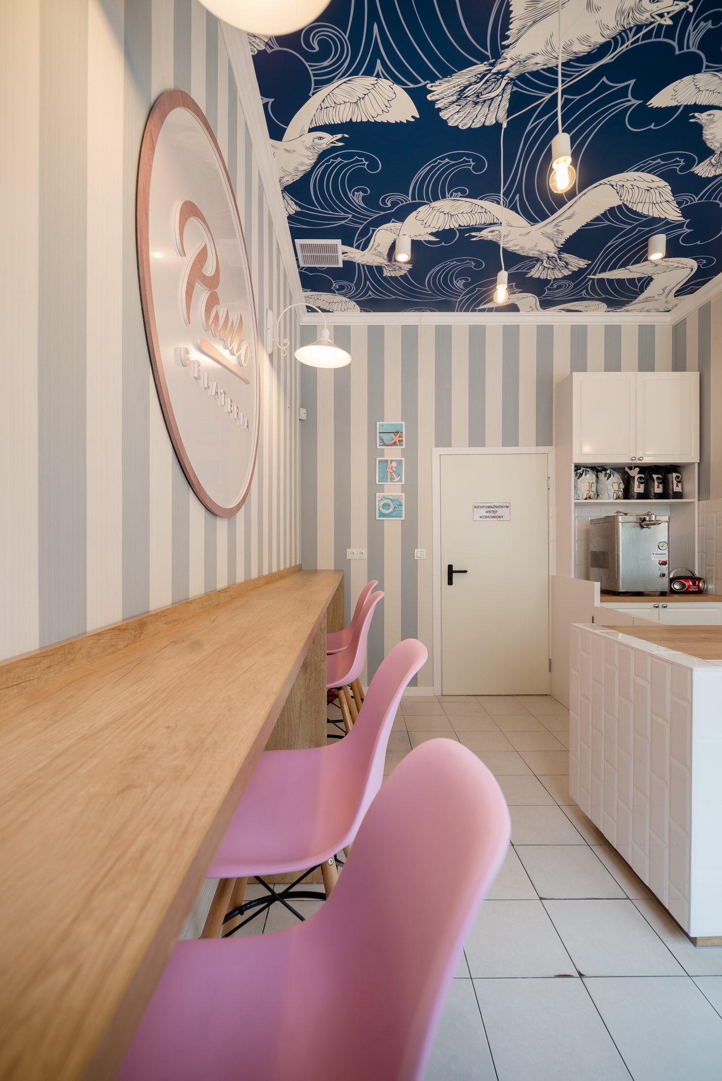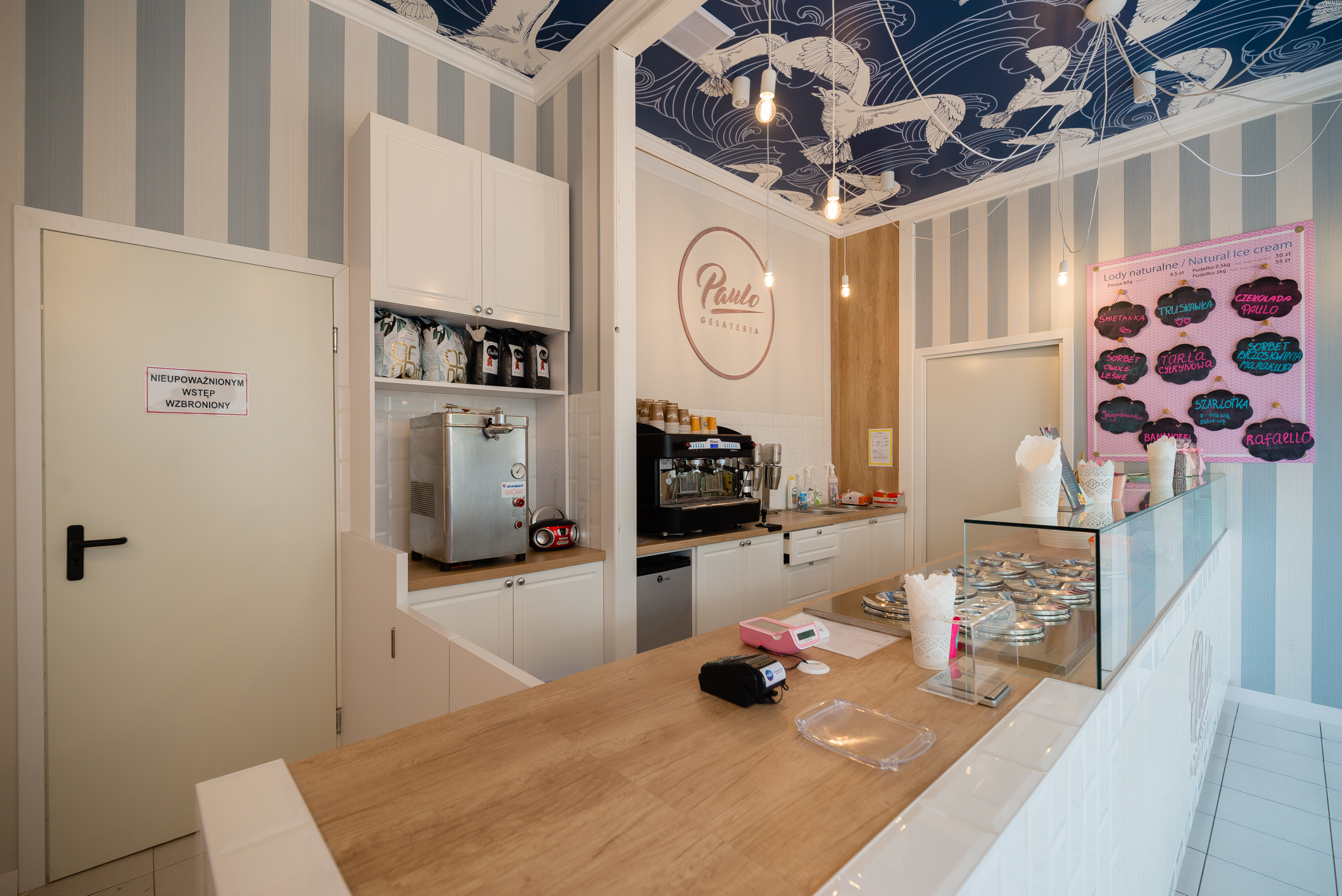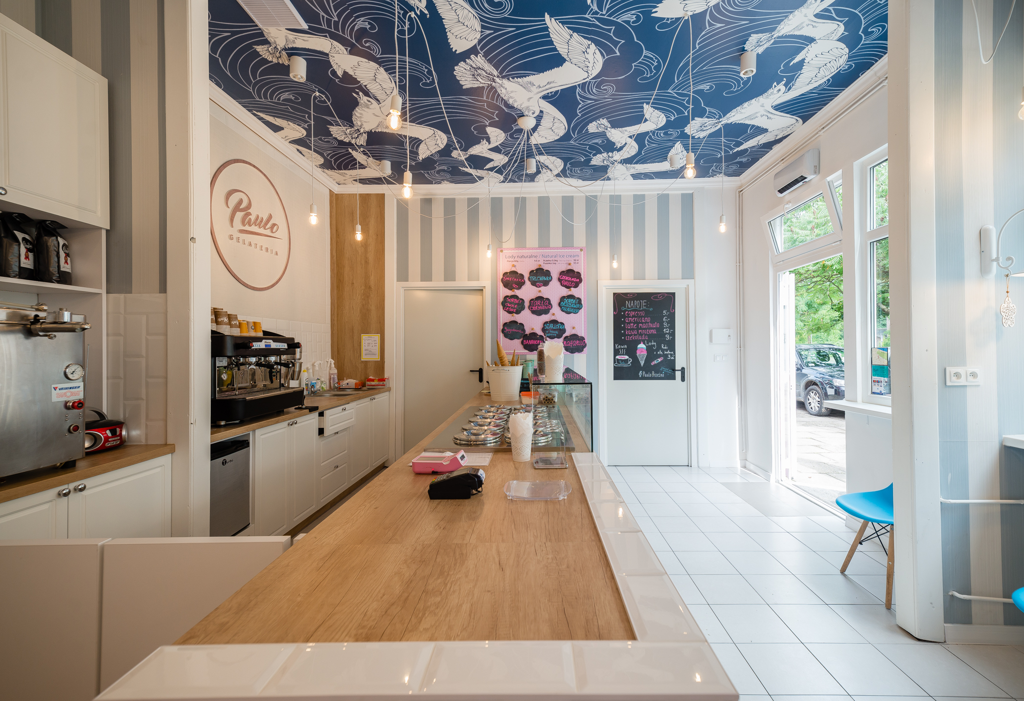 Healthy, organic, and sometimes even sugar-free ice cream is Paulo's speciality. A chain ice cream stores where each place looks completely different but they are connected by powder colours and elements of Scandinavian design. In our career we had the opportunity to design two different premises for two different owners (franchisees). We distinguished them due to the nature of the location of the premises and the aesthetic taste of the owners. Waiting for a photo session.