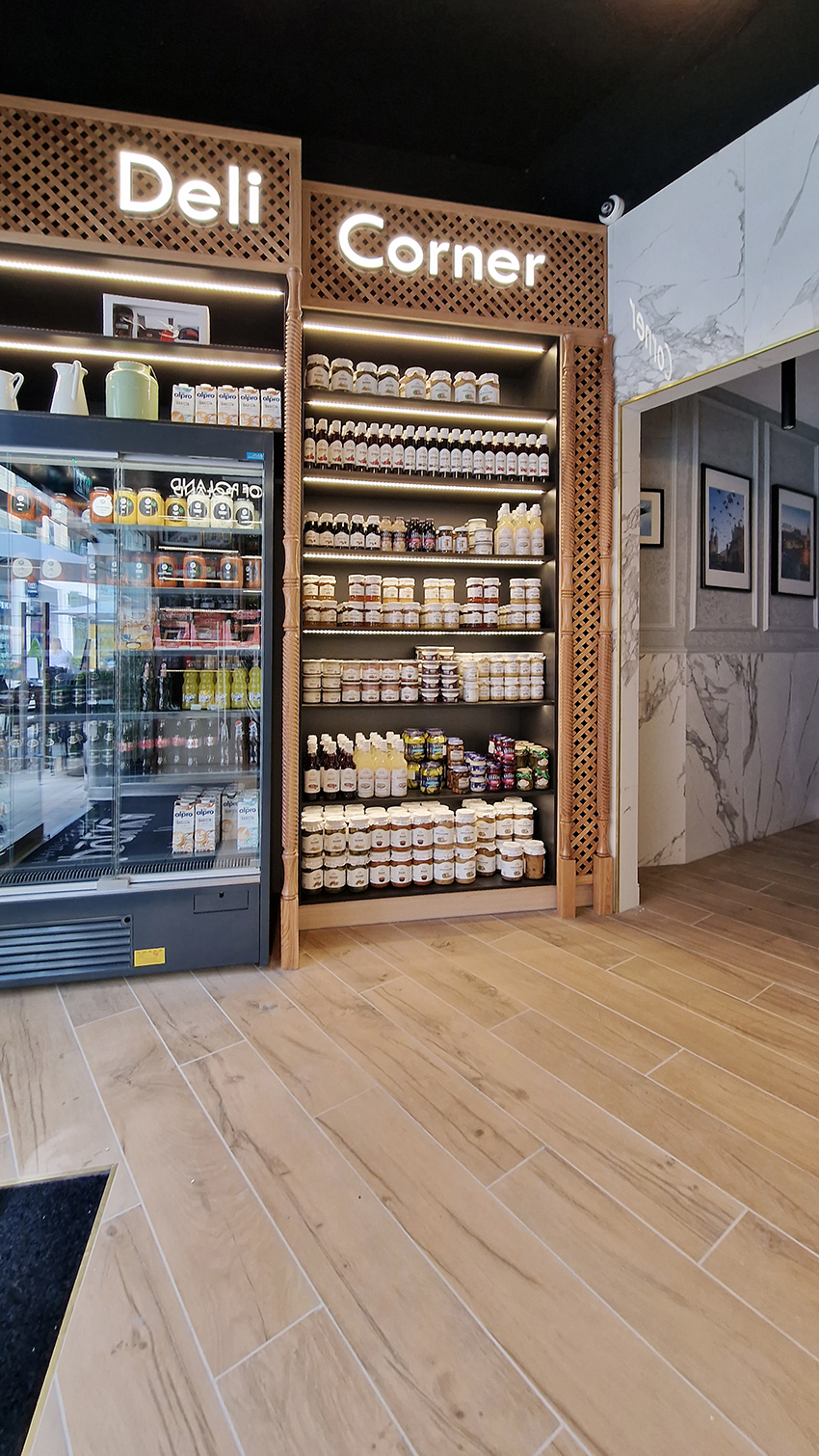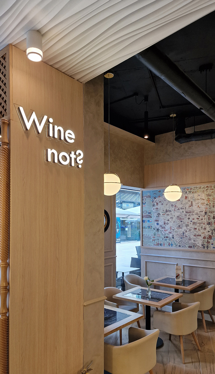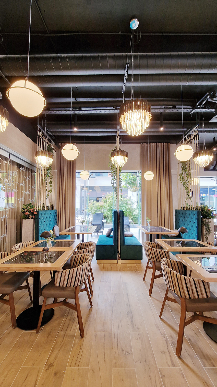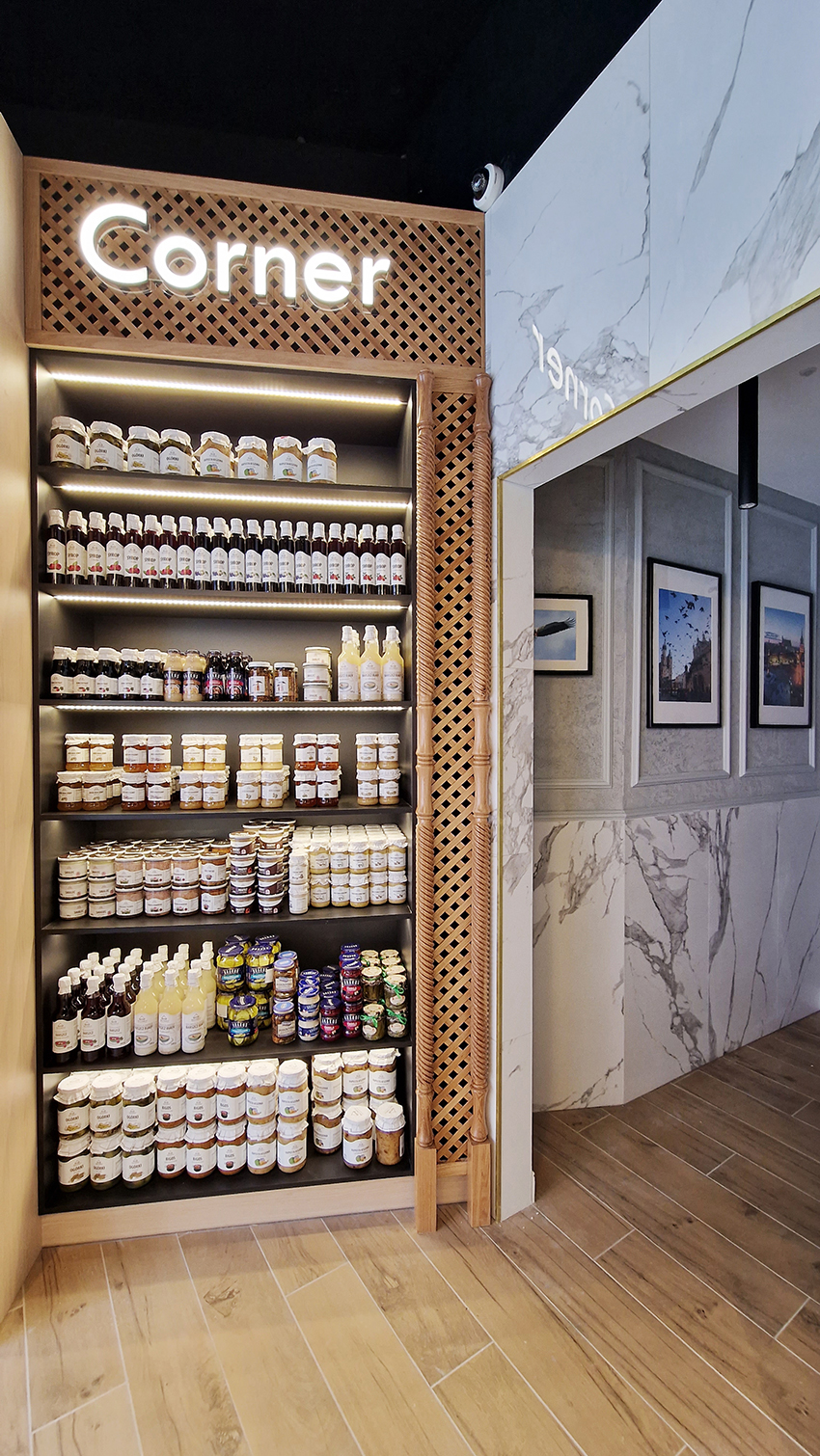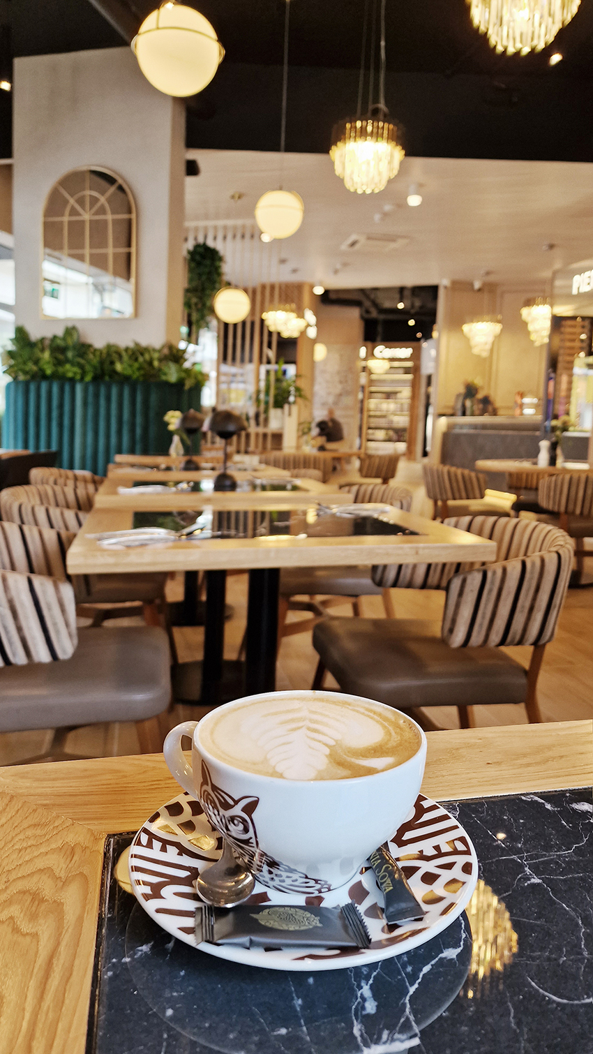 The New/Old restaurant in Ealing in East London is a real treat for locals. One of them said "From EALING to Hollywood" because he was surprised by the high level of interior furnishings. Clients asked me to move and rebrand old restaurant "Sowa Restaurant" into new, much larger premises (300 m2) in the same district of London. The place was supposed to make the WOW effect, encourage taking photos and tagging in social media as well as being distinctive and functional. From the beginning, with the participation of customers, we gave great importance to the number of seats inside and outside because this is the key to this business! A functional kitchen, storage spaces, as well as designer toilets are also our work. Dining room remains the heart of course. The main space was divided for the POLKA PATISSERIE confectionery section (formerly Sowa Patisserie) and the POLKA KITCHEN restaurant area with a bar, serving colourful drinks. Right behind it we designed the "live kitchen" – a station where dumplings (one of the most important and distinguishing Polish dish) are made. The colour scheme of the interior was kept in bottle greens, wood and white and black marble. We made this place elegant and timeless.