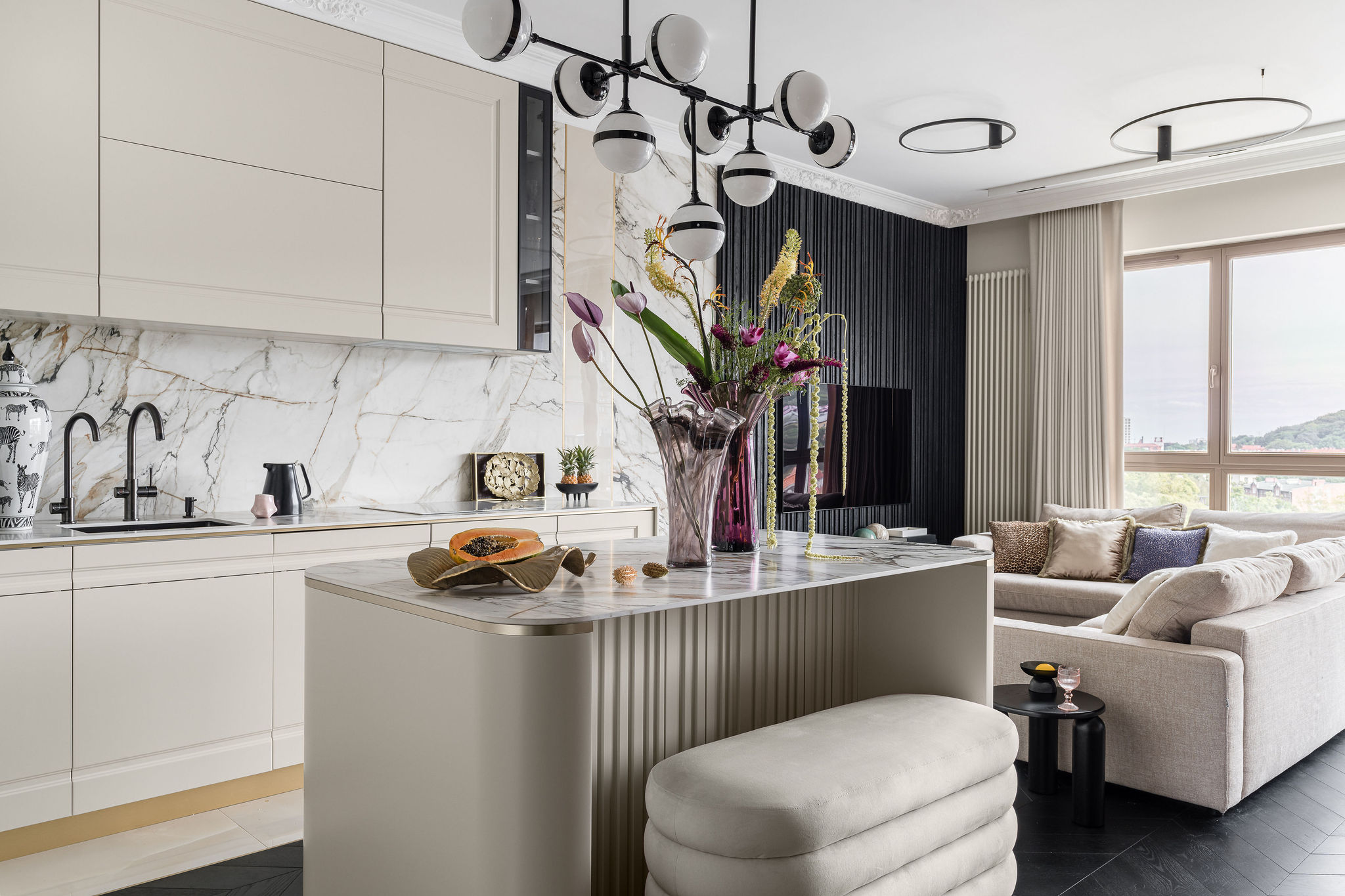 We are located in our own showroom apartment. During a single meeting, I can show not only visualizations but also the actual materials included in the design. Clients can usually order most of these through our store.