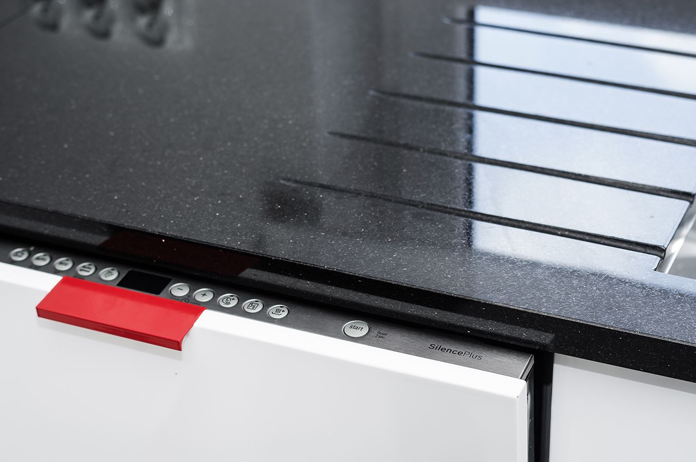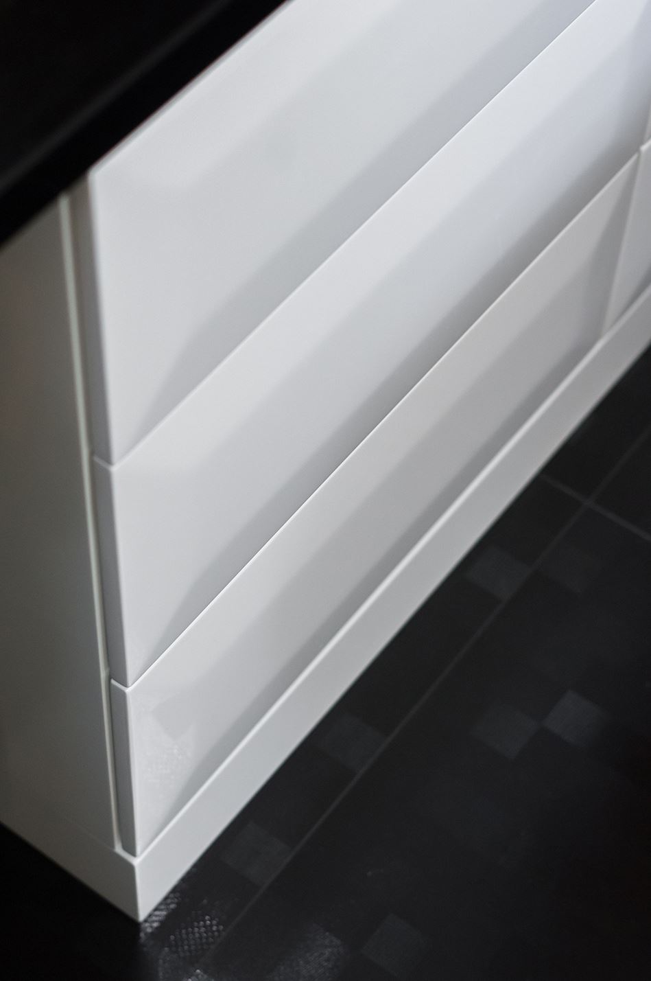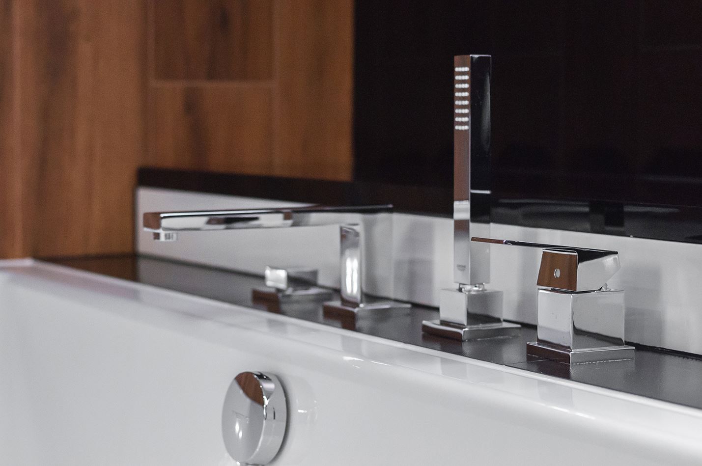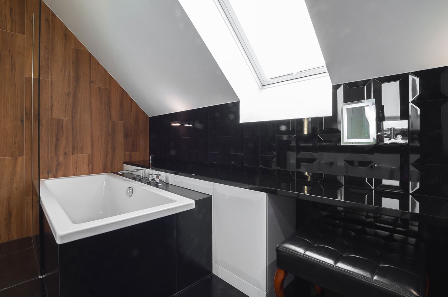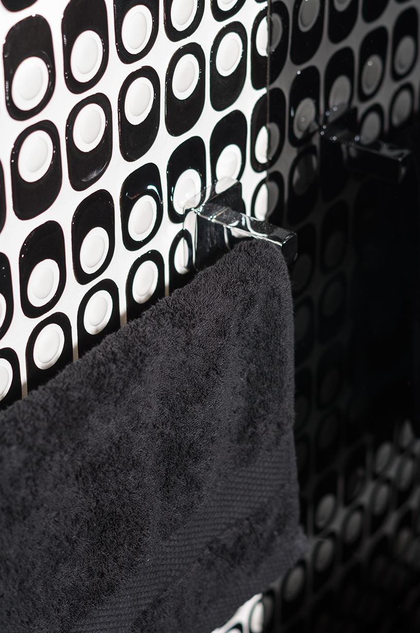 A cult project from IDEAL Interior Design Studio designed in an eclectic style combining elements of modernity and glamour. This is my first realisation using tiles that perfectly imitate marble, even before it became so fashionable. One thing is certain, untill I use exactly this model of tiles when designing marble surfaces. The living room makes a great impression in this investment, and all thanks to the combination of concrete slabs and "marble" tiles with a black mirror stretch ceiling. This space is completed by a beautiful Eichholtz carpet and lighting (spider lamp + Skygarden lamp). The guest bathroom is the next revolution! We combine red quartzite with a beautiful mosaic from Ardea Arte. Original and innovative stairs with LED lights in the middle of the tread lead us to the first floor, where another bathroom and rooms do not differ in character from the rest of the house.