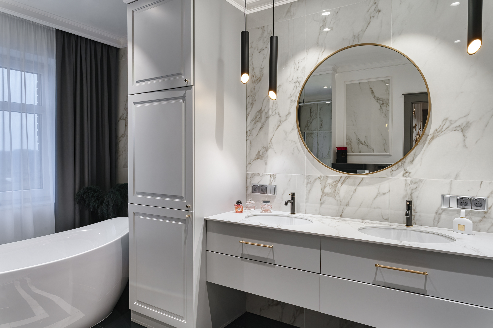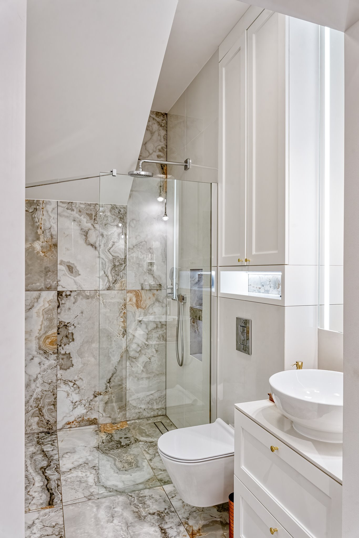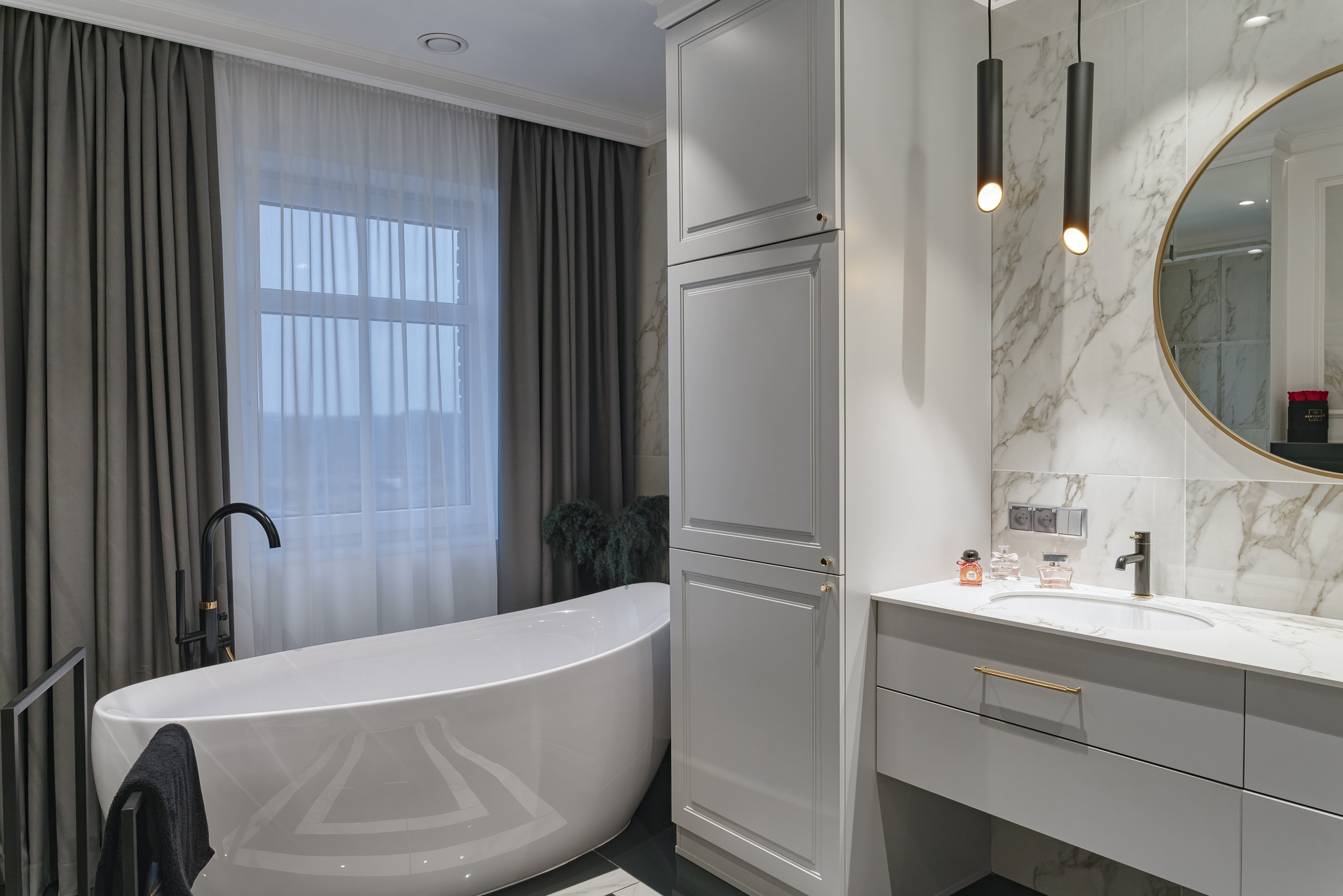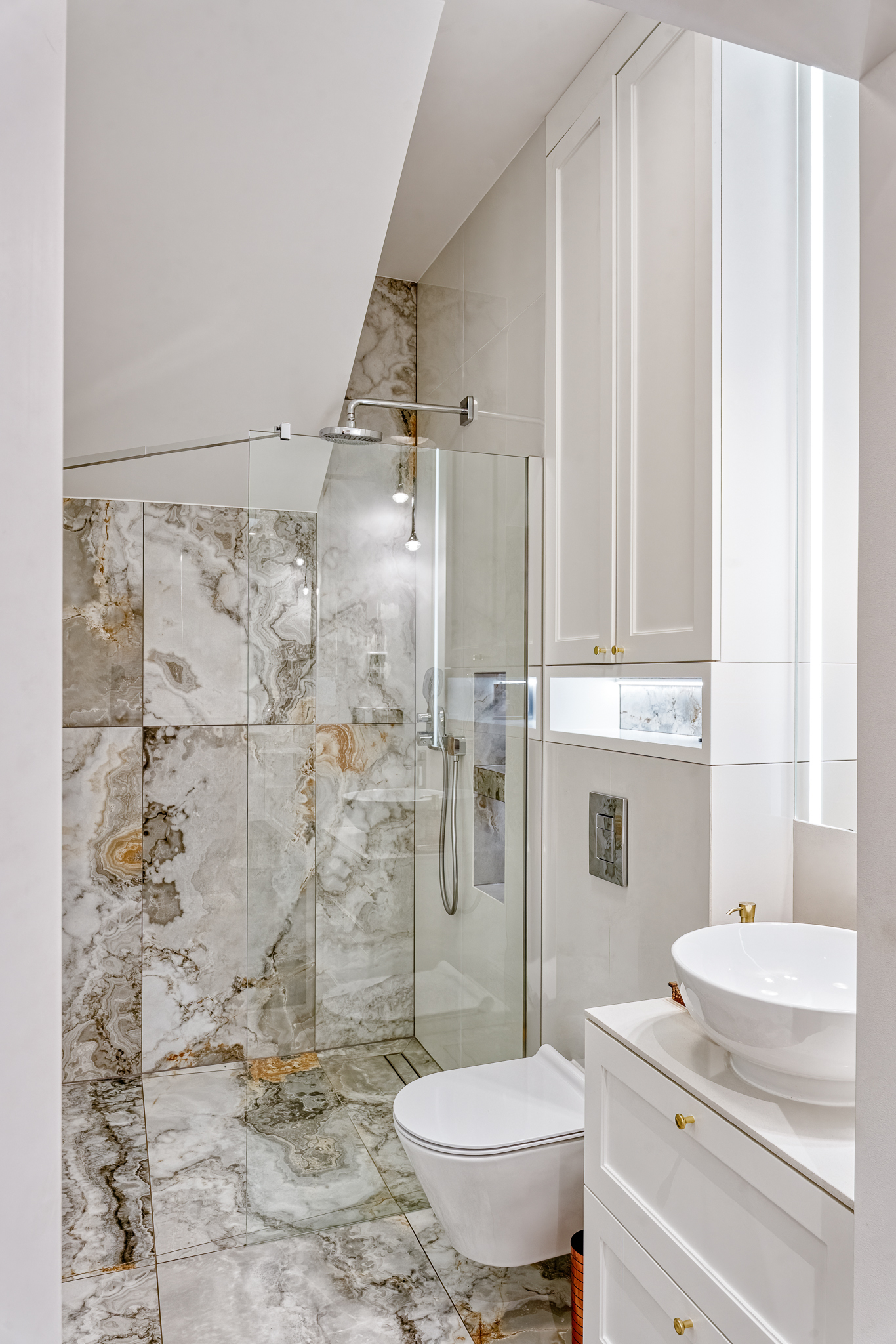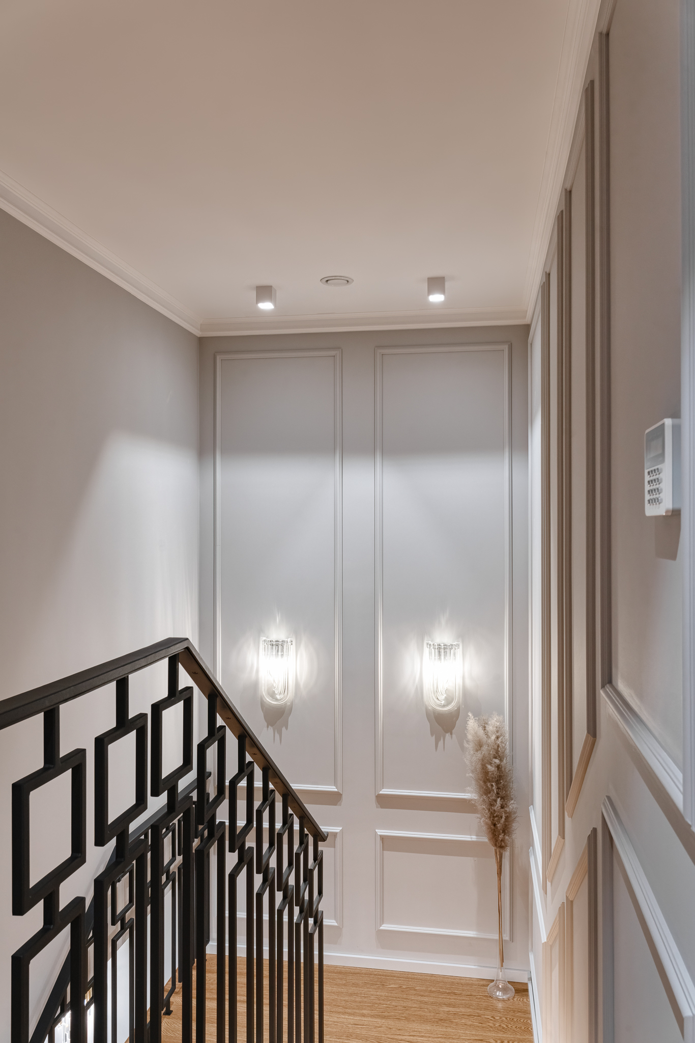 The design of a family interior decoratd with feminine taste. Thanks to great investors, an interior full of crystals, floral patterns and colour (bottle green, emerald) was created. The project included the ground floor: study, kitchen, living room with dining room, guest bathroom; and the first floor where the bedroom and main bathroom were designed at that moment. The interiors have been designed to create colour and material consistency with the ground floor of the house.